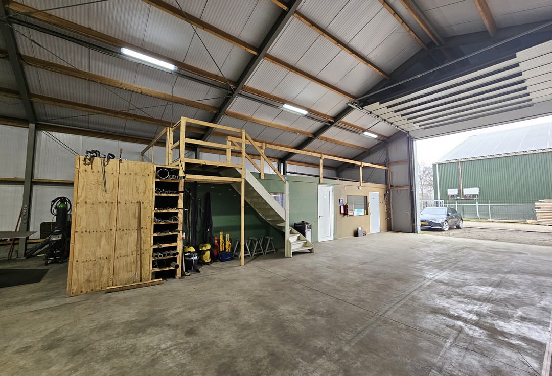 De huidige huurder biedt een jonge ABUS kolomzwenkkraan, energiezuinige LED armaturen en opslag/zeecontainer ter overname aan.