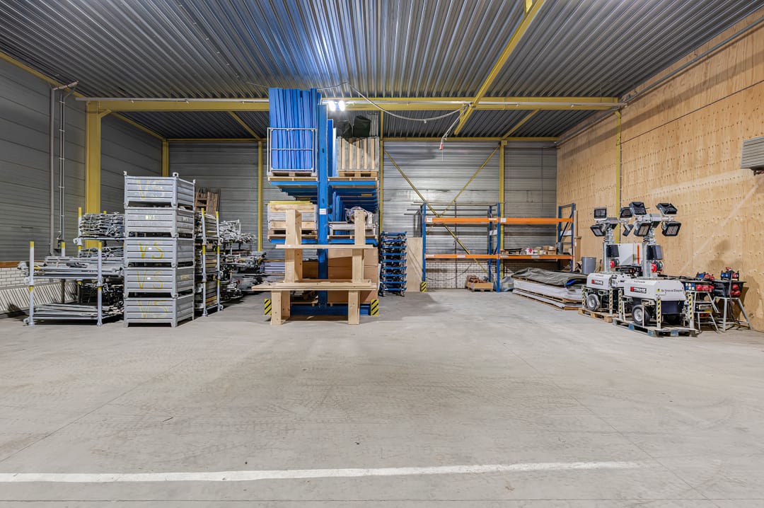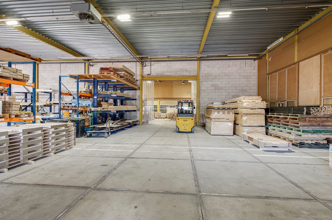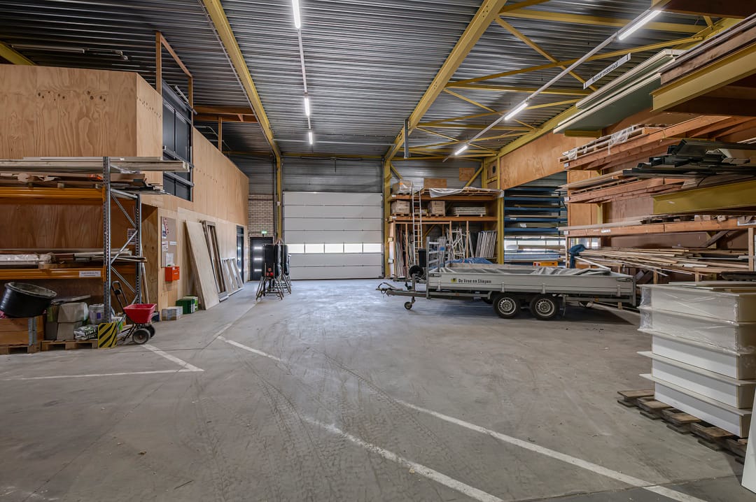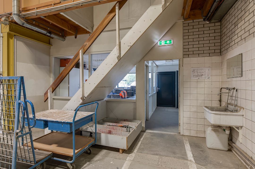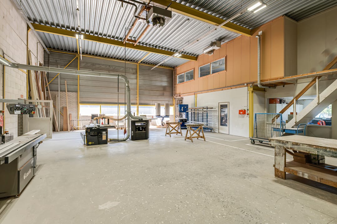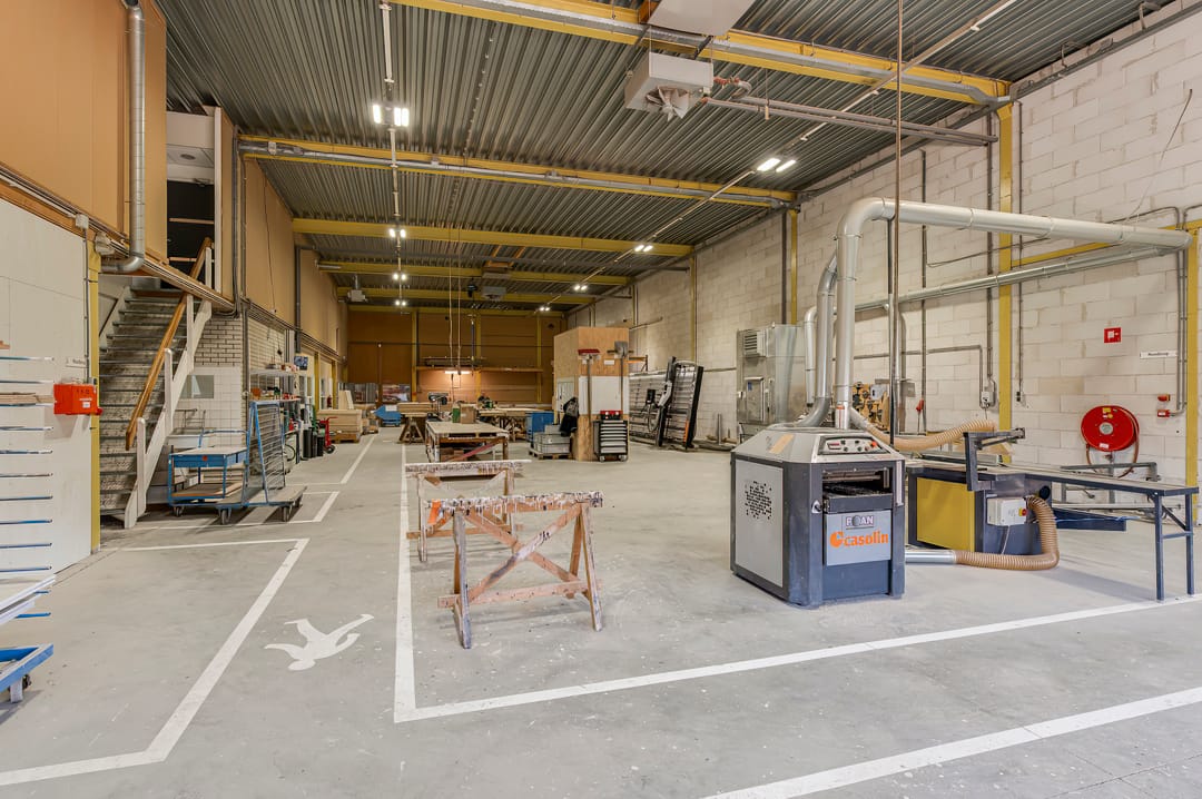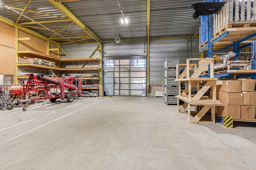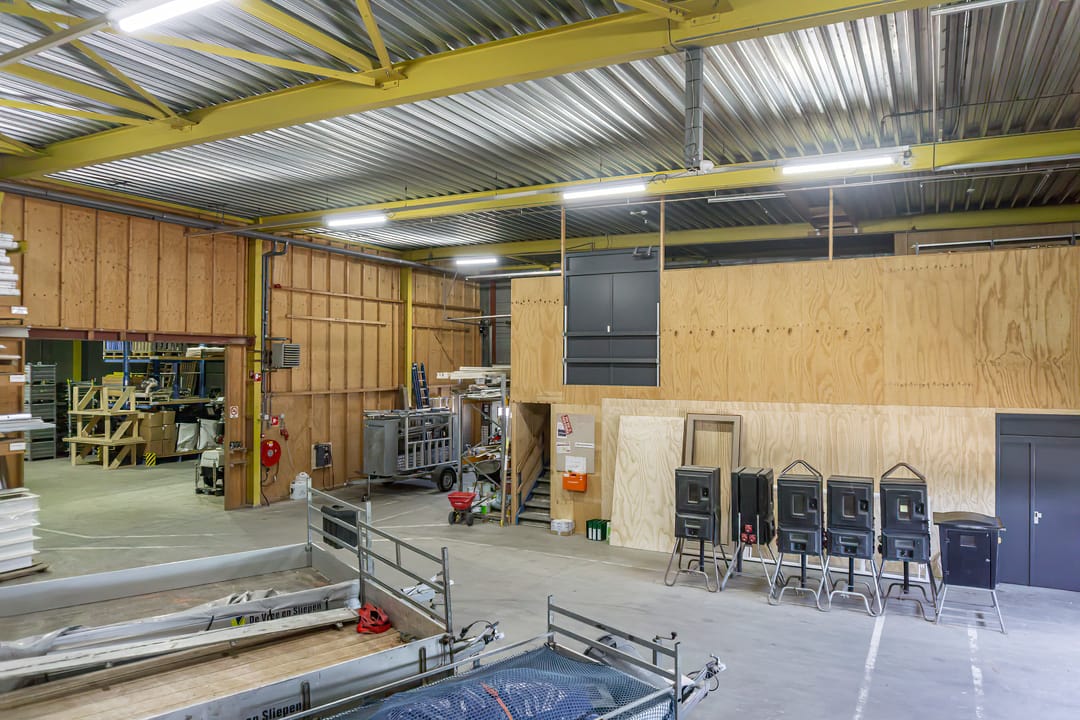 De bedrijfsruimte is verdeeld in vier compartimenten. Eén compartiment heeft een duidelijke logistieke functie en is voorzien van twee roldeuren die toegang bieden tot het zij – en het achter terrein. Twee bedrijfsruimten, tevens voorzien van 2 roldeuren, zijn in gebruik ten behoeve van assemblage activiteiten en daartoe ingericht, één ruimte is voorzien van een kantoorruimte en een opslagruimte voor toebehoren. Eén bedrijfsruimte is ingericht ten behoeve van op – en overslagactiviteiten. De compartimenten kunnen desgewenst samengevoegd worden tot een grote ruimte van 1650m2.