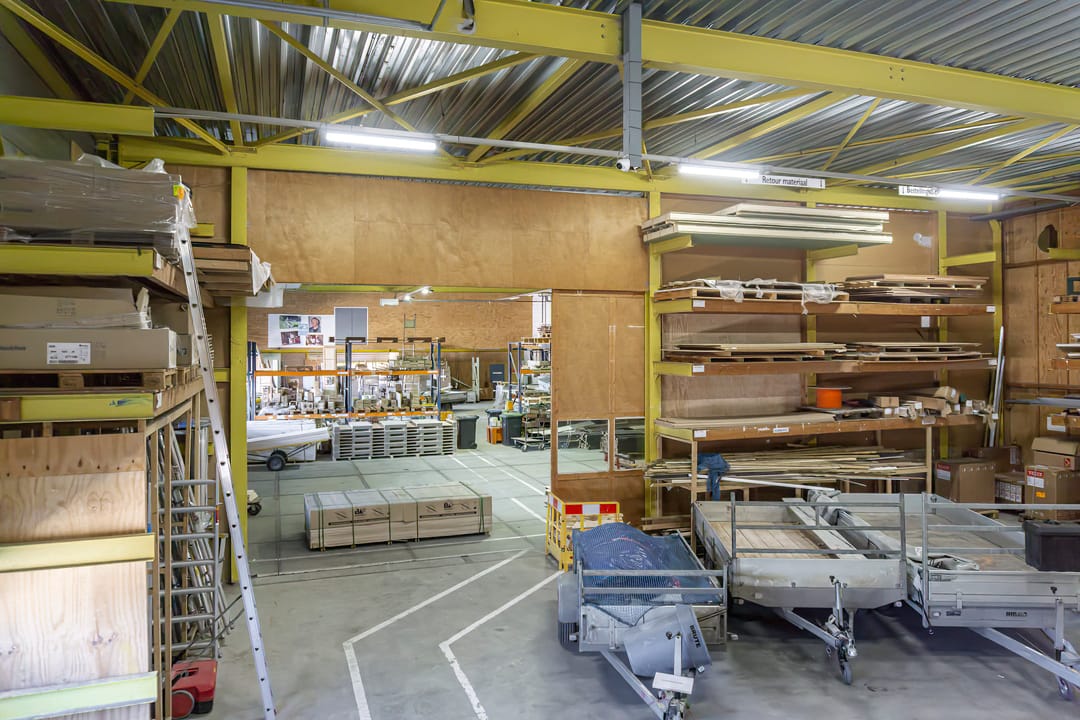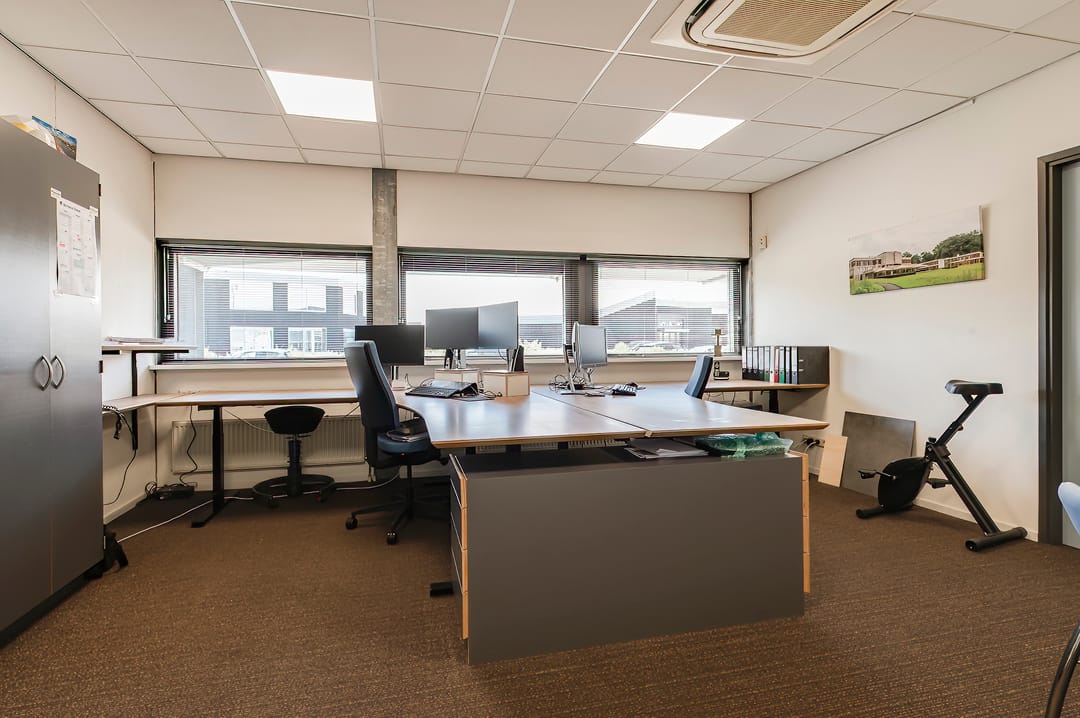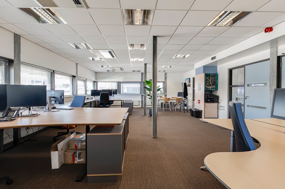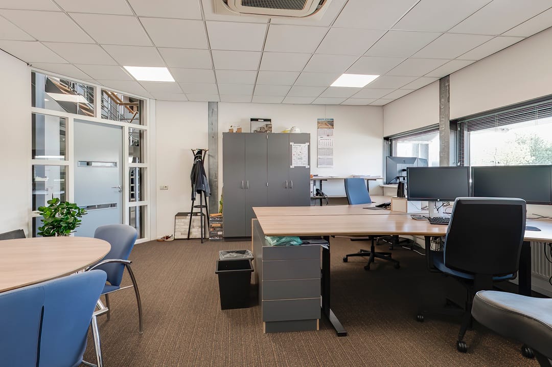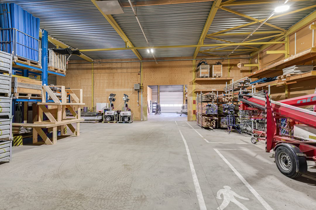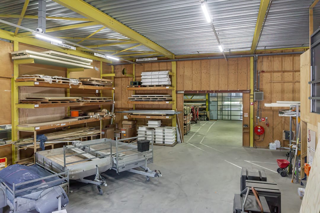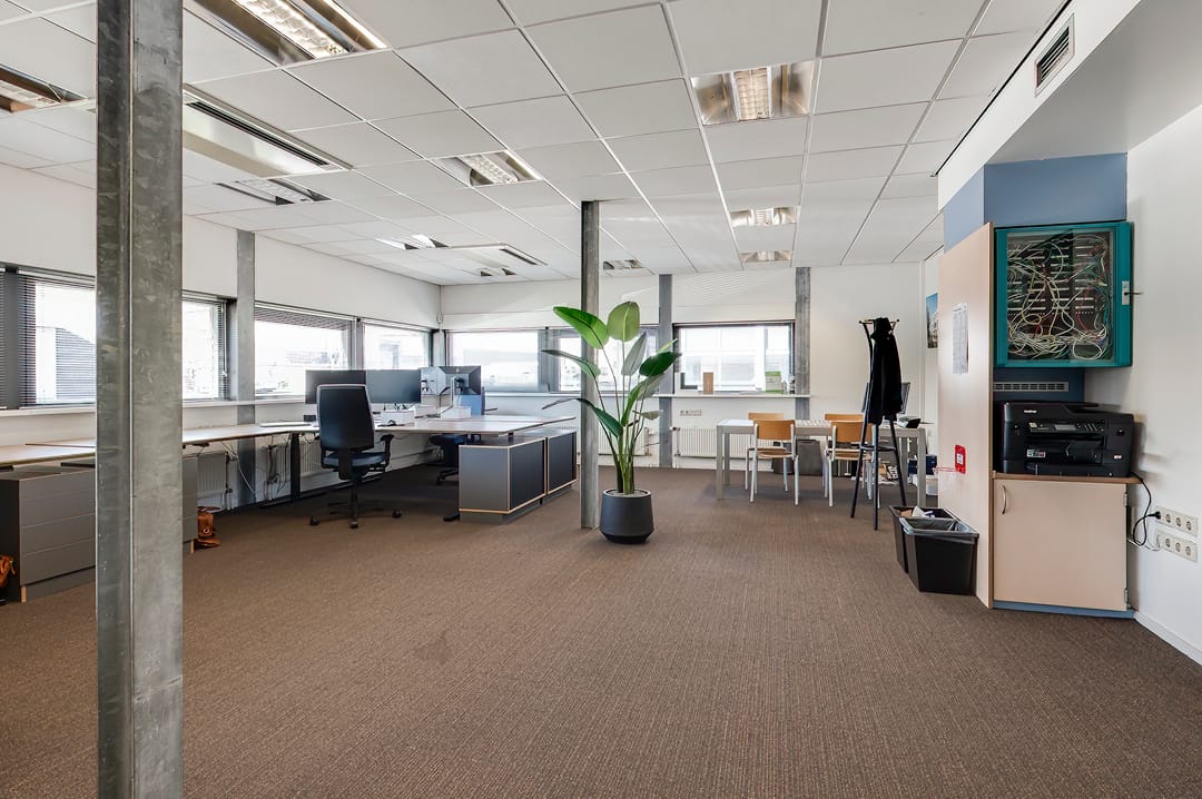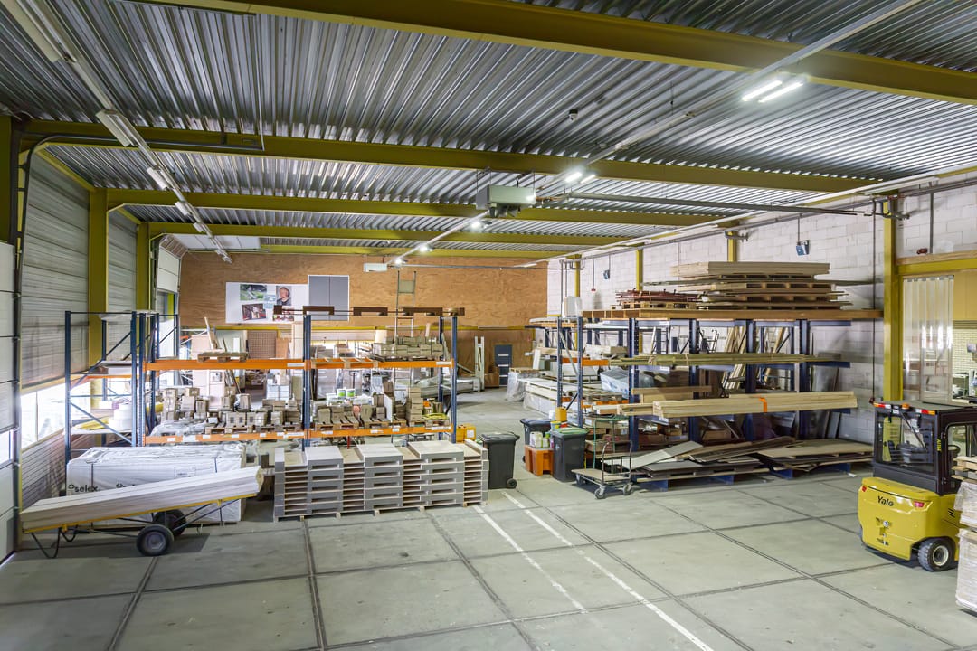 De bedrijfsruimte is verdeeld in vier compartimenten. Eén compartiment heeft een duidelijke logistieke functie en is voorzien van twee roldeuren die toegang bieden tot het zij – en het achter terrein. Twee bedrijfsruimten, tevens voorzien van 2 roldeuren, zijn in gebruik ten behoeve van assemblage activiteiten en daartoe ingericht, één ruimte is voorzien van een kantoorruimte en een opslagruimte voor toebehoren. Eén bedrijfsruimte is ingericht ten behoeve van op – en overslagactiviteiten. De compartimenten kunnen desgewenst samengevoegd worden tot een grote ruimte van 1650m2.