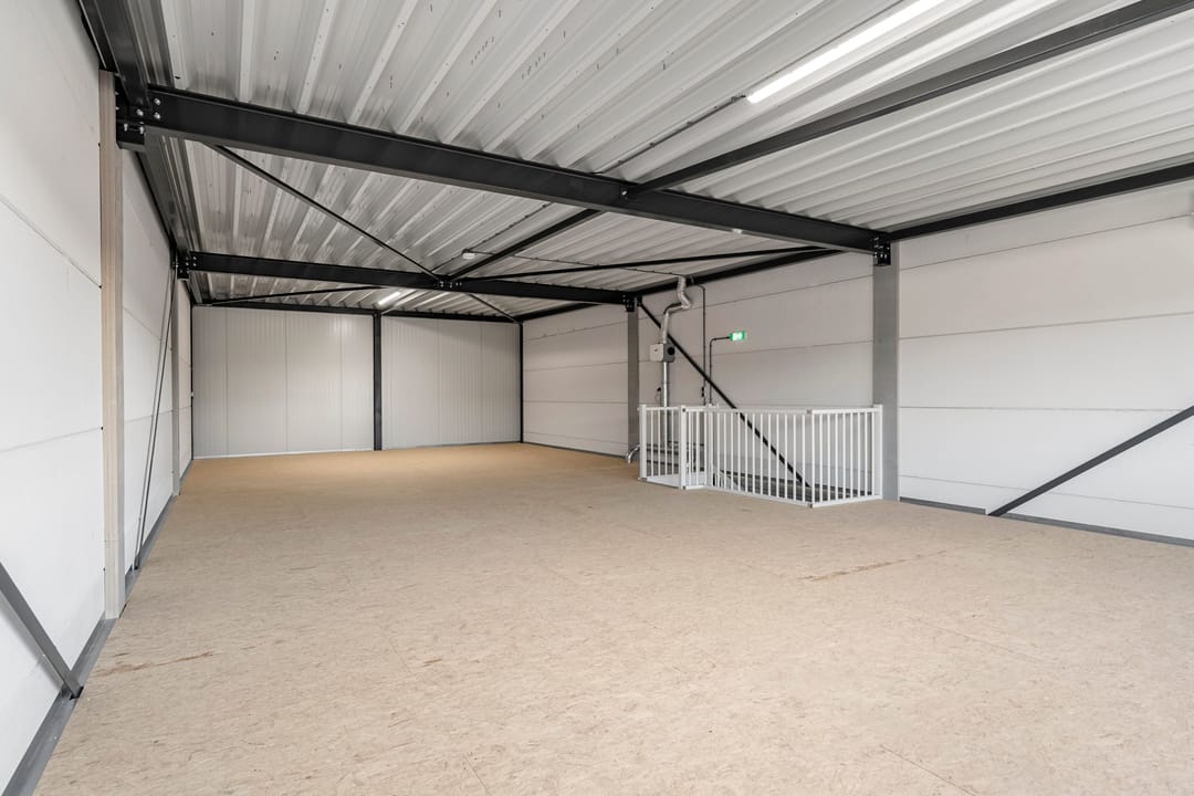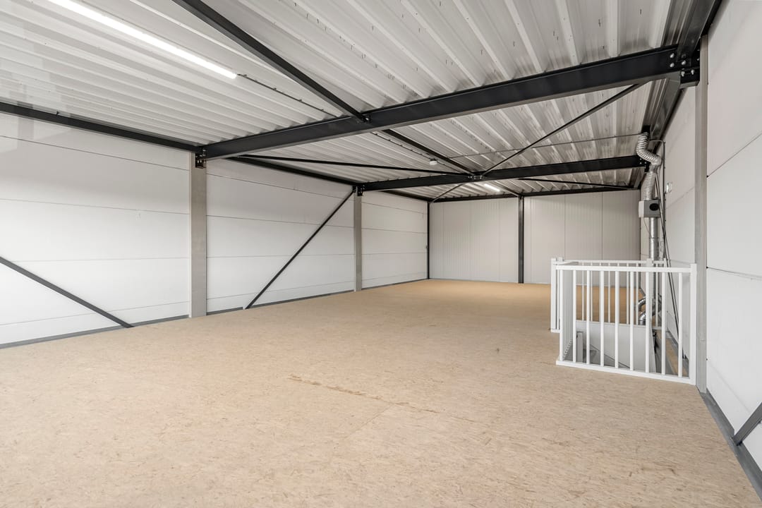 Het bedrijfsgebouw zal worden opgeleverd in en huidige staat, onder andere voorzien van zonnepanelen, scheidingswanden en sanitaire voorzieningen.