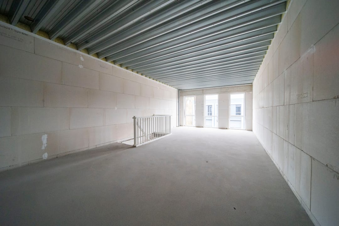 De eerste verdieping beslaat eveneens een open en rechthoekige ruimte, die qua indeling en gebruik volledig naar wens kan worden ingevuld. Vanuit de trapopgang komt u in een helder en ruim vertrek dat uitstekend geschikt is voor kantoor-, opslag- of ondersteunende werkruimte. De verdieping biedt ruim voldoende daglicht via meerdere raampartijen aan de voorzijde van het pand. Daarnaast zijn op deze verdieping al dakdoorvoeren voorbereid, wat het eenvoudig maakt om aanvullende installaties te plaatsen zoals airconditioning.