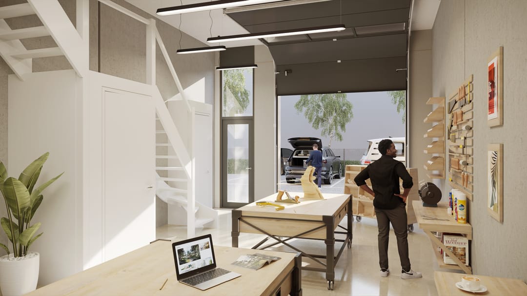 - Elektrische overheaddeur met een hoogte van 3,75 m1 en daglichttoetreding