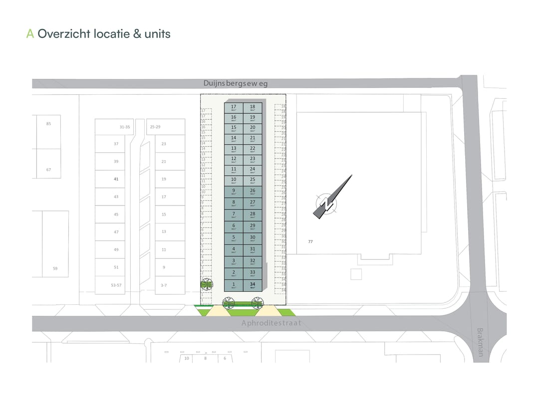 De Aphrodite betreft een bedrijfsverzamelgebouw bestaande uit 34 hoogwaardige bedrijfsunits, variërend in oppervlakte van 84 m2 tot en met 96 m2 verdeeld over twee bouwlagen. De twee beschikbare geschakelde bedrijfsunits hebben een oppervlakte van 96 m2 en 94 m2, totaal 190 m2, en zijn voorzien van betonnen vloeren en prefab betonnen binnenwanden. De extra hoge doorrijhoogte van maar liefst 3,75m1 en een vrije hoogte onder de begane grondvloer van 4,35m1 maken de units geschikt voor multifunctionele doeleinden. De units zijn gasloos gebouwd en afgewerkt met hoogwaardige, duurzame materialen om ervoor te zorgen dat de units energiezuinig en toekomstbestendig zijn. De moderne eigentijdse architectuur is een visitekaartje voor uw bedrijf of belegging.