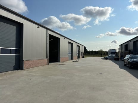 - de bedrijfsruimte/opslagloods is voorzien van een vlakke beton vloer;