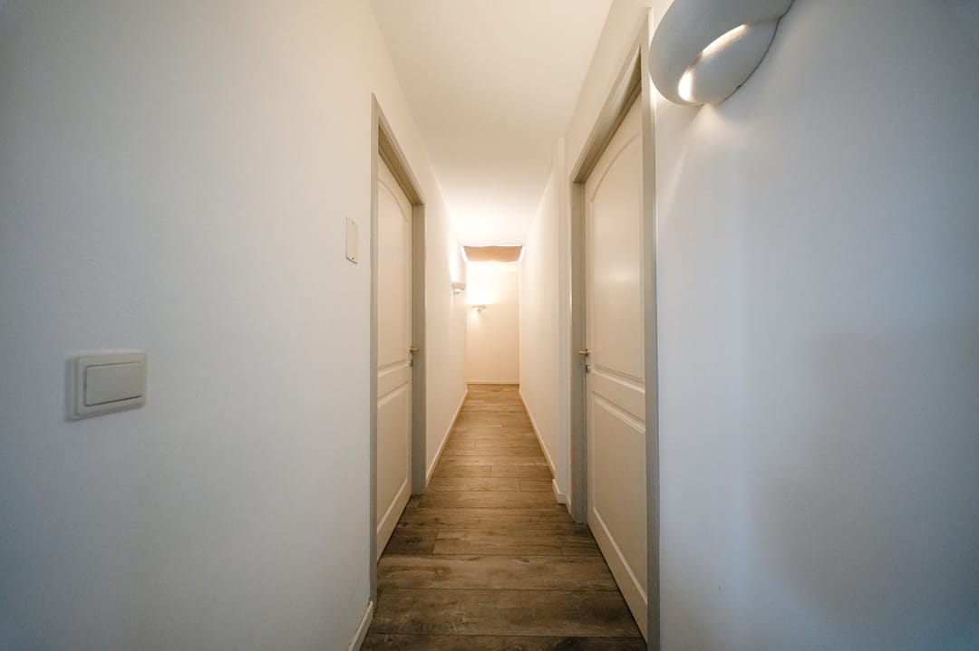 De bedrijfswoning beschikt over een eigen, afsluitbare entree op de begane grond, welke volledig behoort tot de woning. Via deze entree komt u in een ruime hal die exclusief toegang biedt tot de bedrijfswoning. In deze hal bevindt zich de vaste trap die leidt naar de eerste verdieping. Hierdoor is sprake van een duidelijke en zelfstandige toegang, los van de overige bedrijfs- en kantoorunits in het complex.