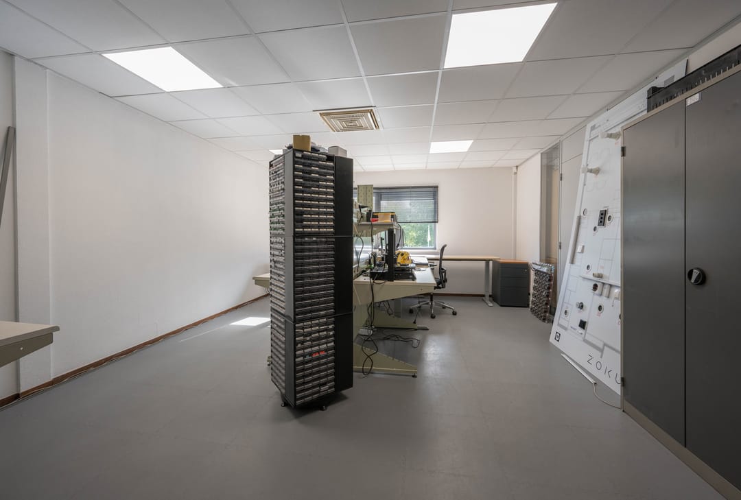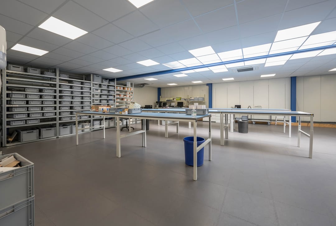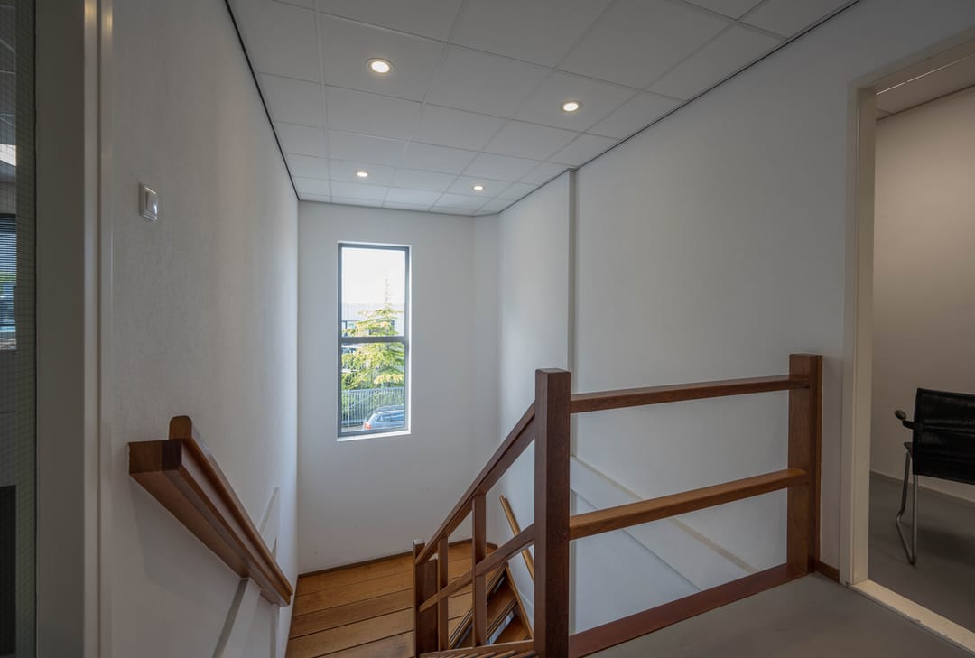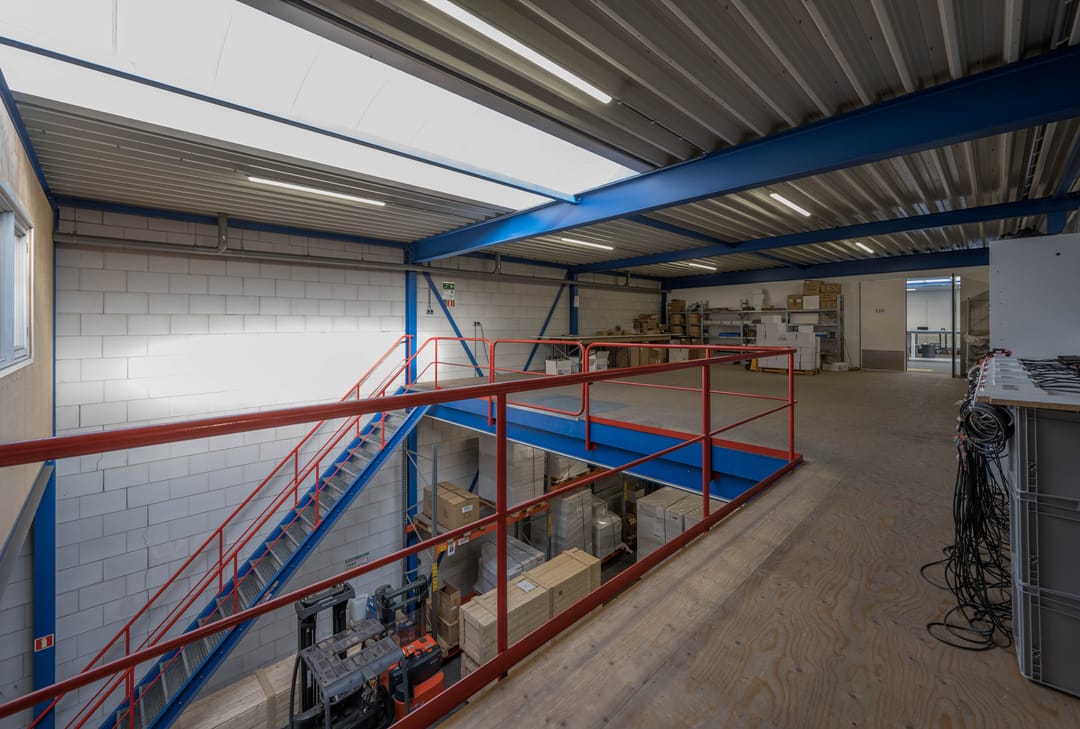 Op de verdieping bevindt zicht ca. 110m² kantoorruimte verdeeld in een viertal kantoren en ca. 370m² opslagruimte.