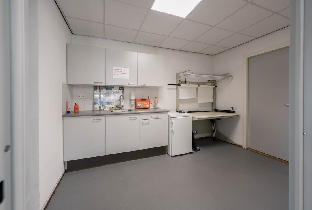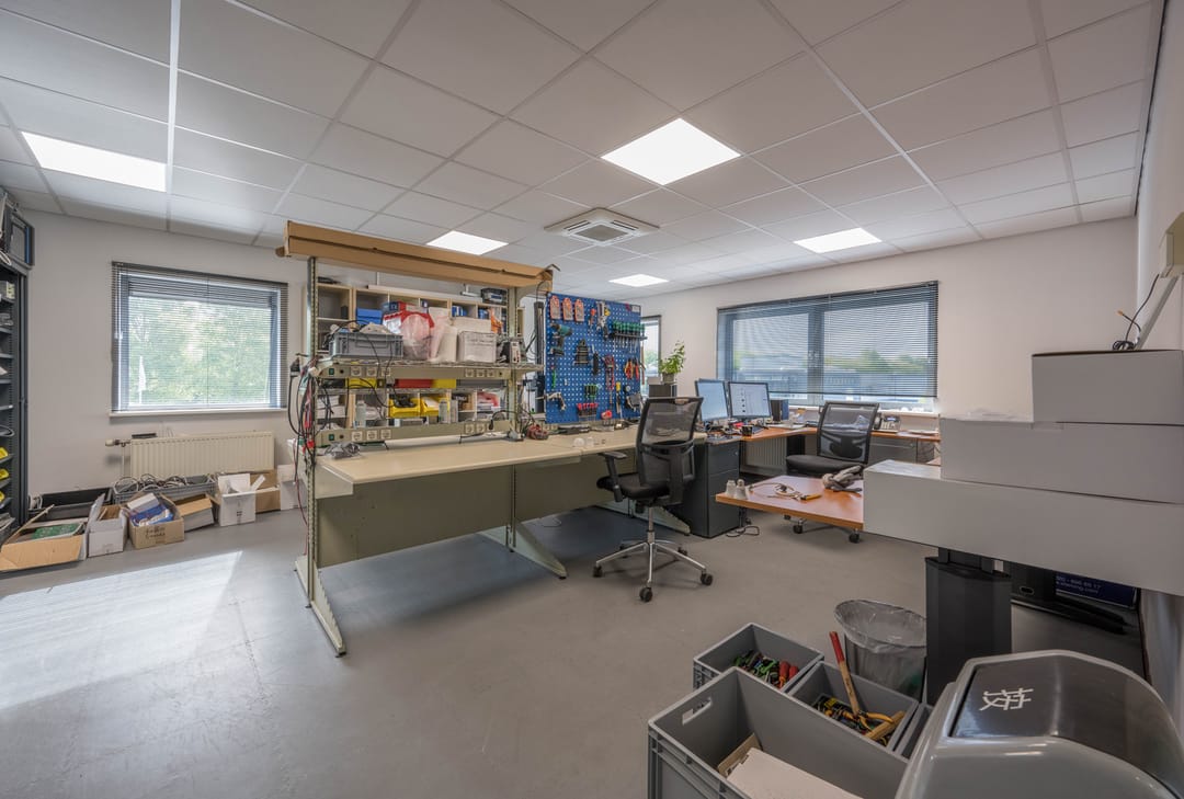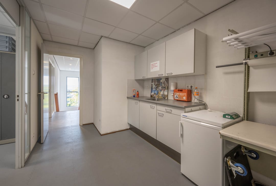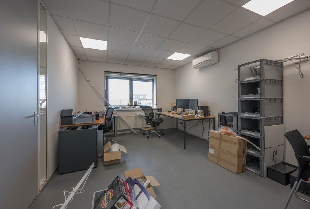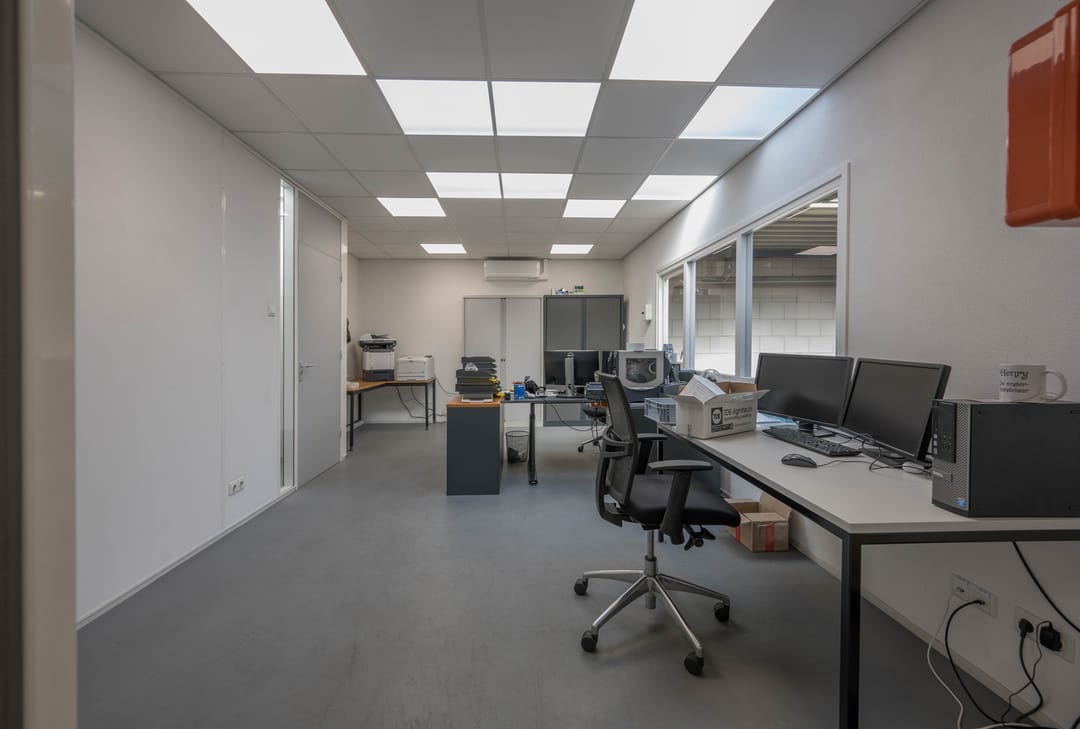 Algemene ruimte, toilet, 4 kantoorkamers, kantine, keuken met keukenblok en opslagruimte. Verwarming d.m.v. CV installatie. De kantoren zijn voorzien van airco en een systeemplafond met inbouwverlichting