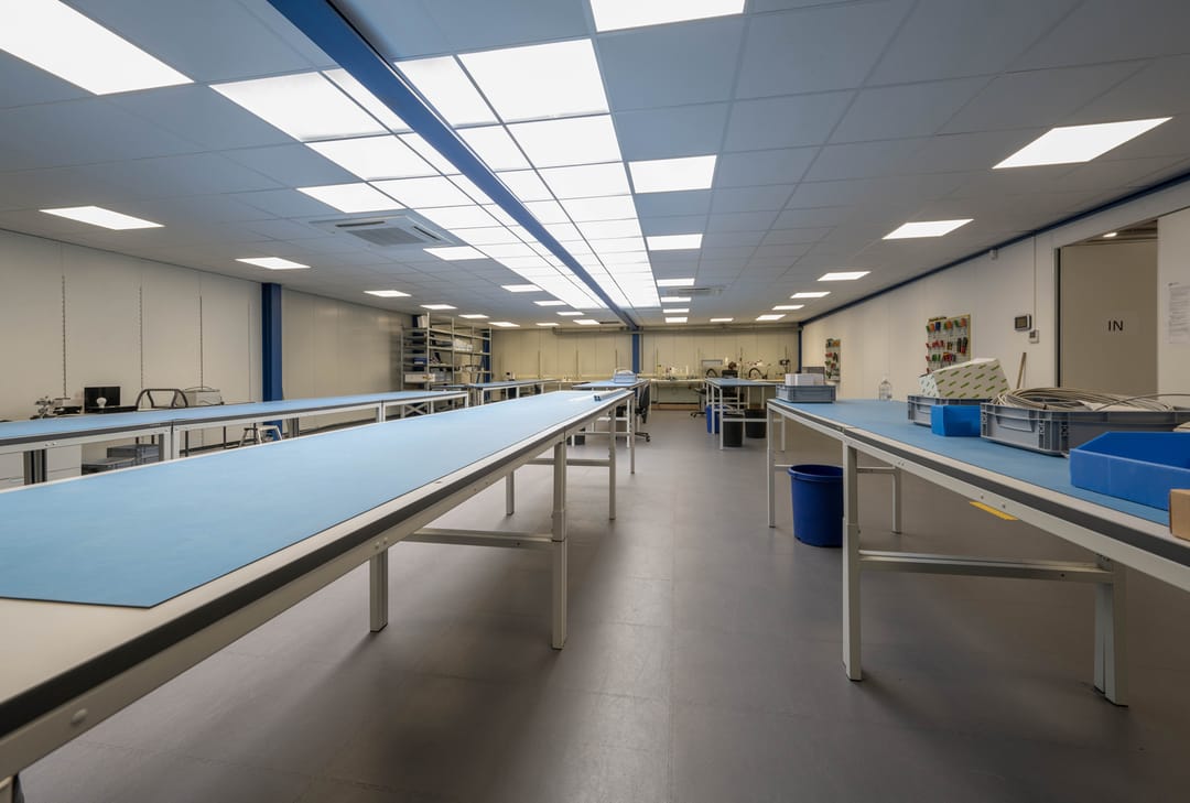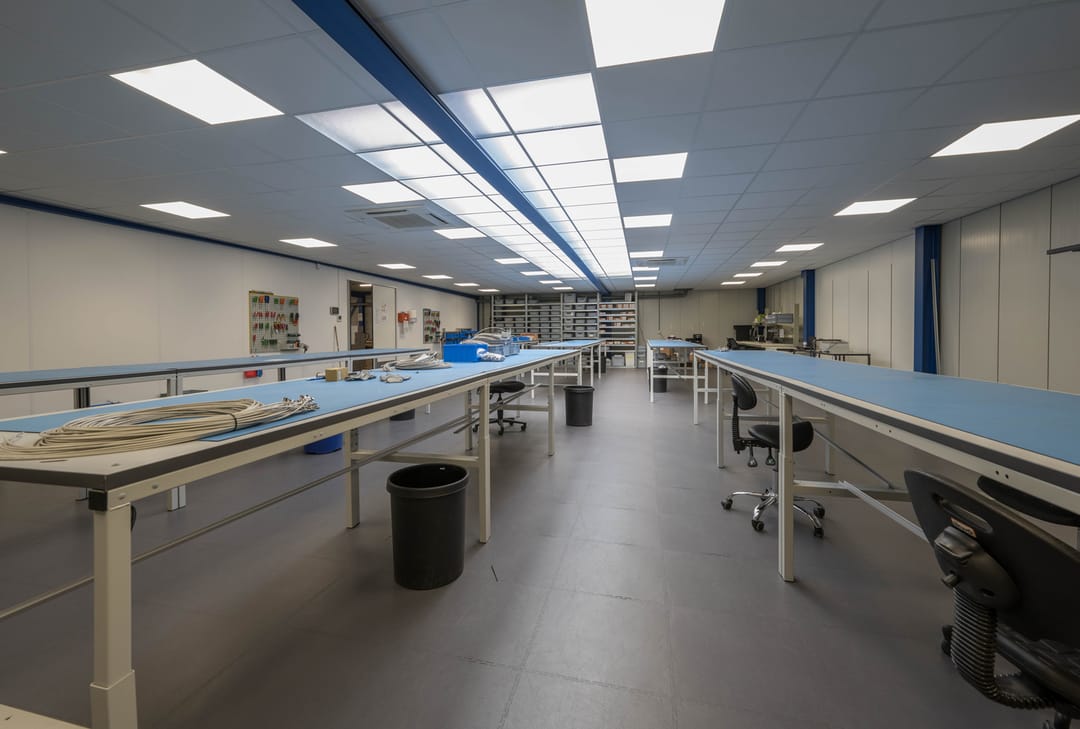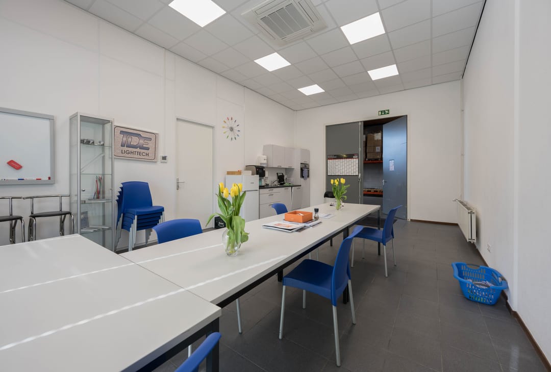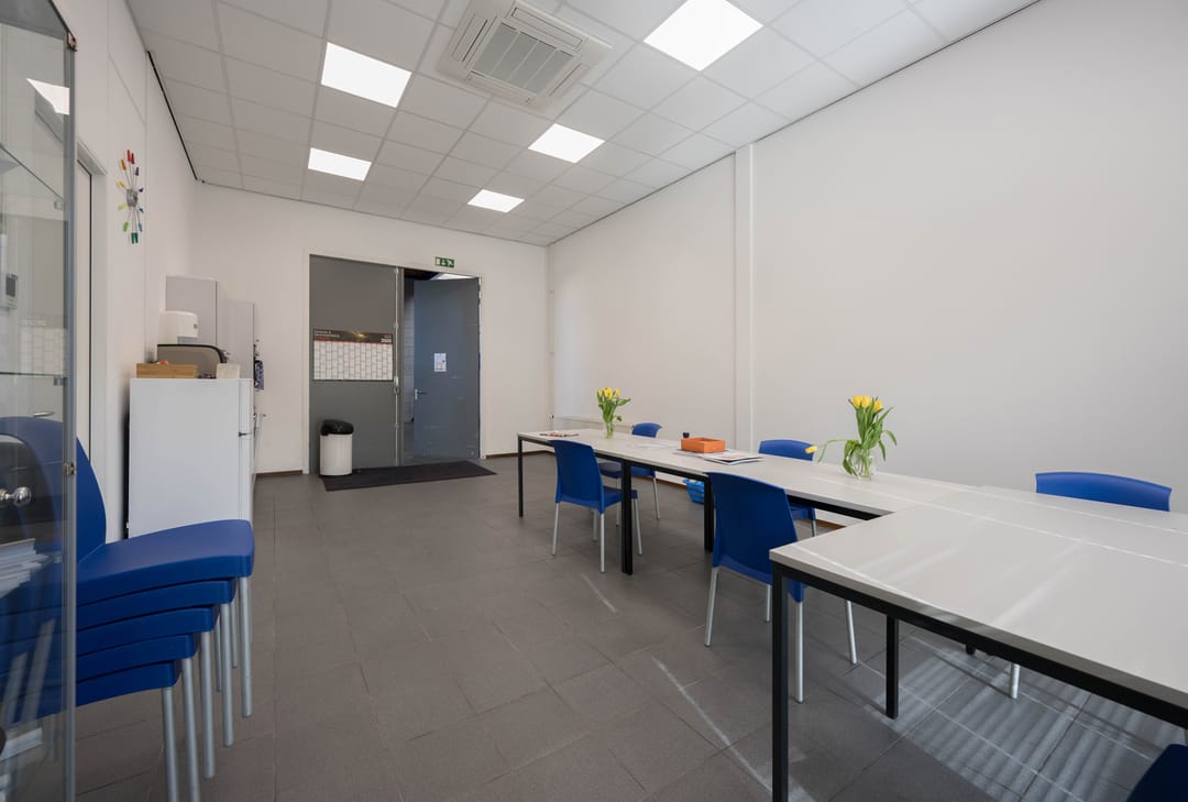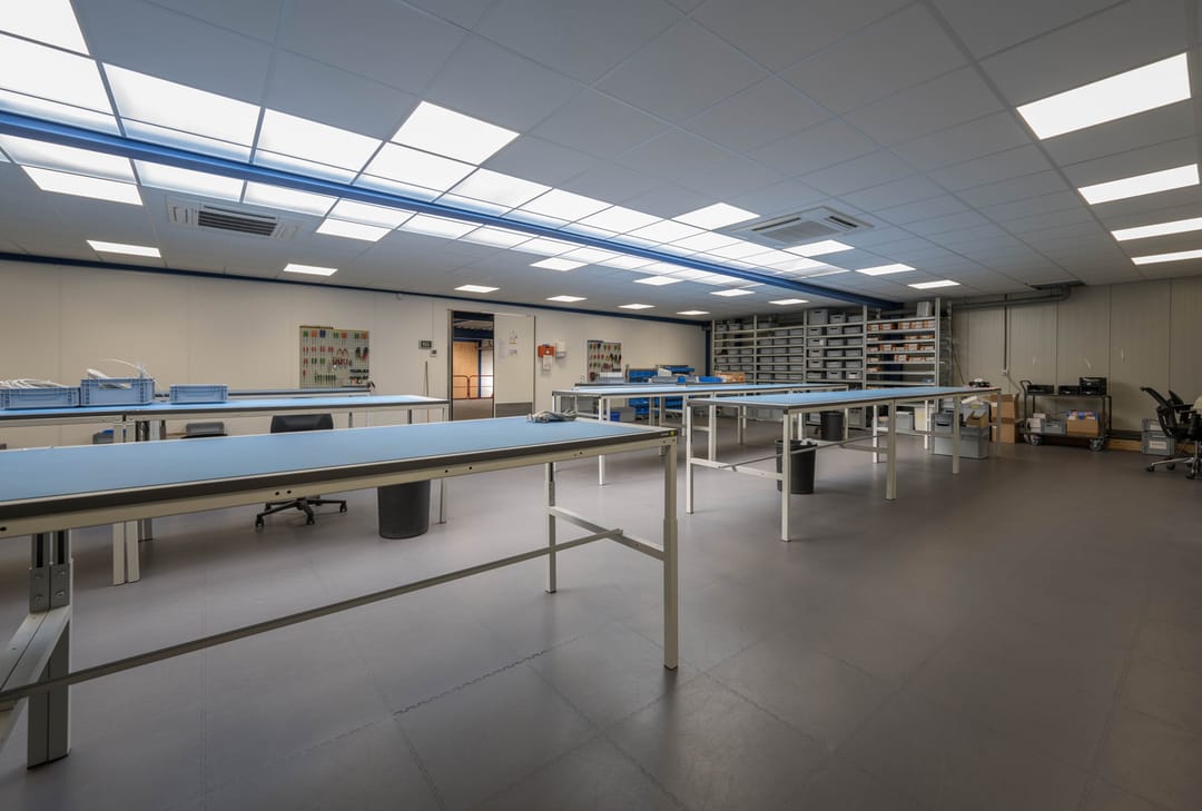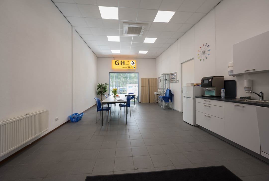 Algemene ruimte, toilet, 4 kantoorkamers, kantine, keuken met keukenblok en opslagruimte. Verwarming d.m.v. CV installatie. De kantoren zijn voorzien van airco en een systeemplafond met inbouwverlichting