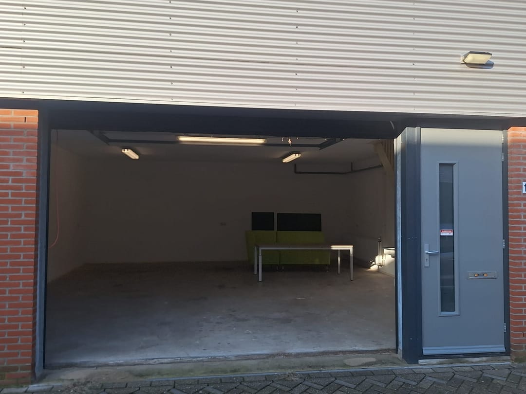 - Toegang via een separate loopdeur en een grote roldeur, geschikt voor laden en lossen.