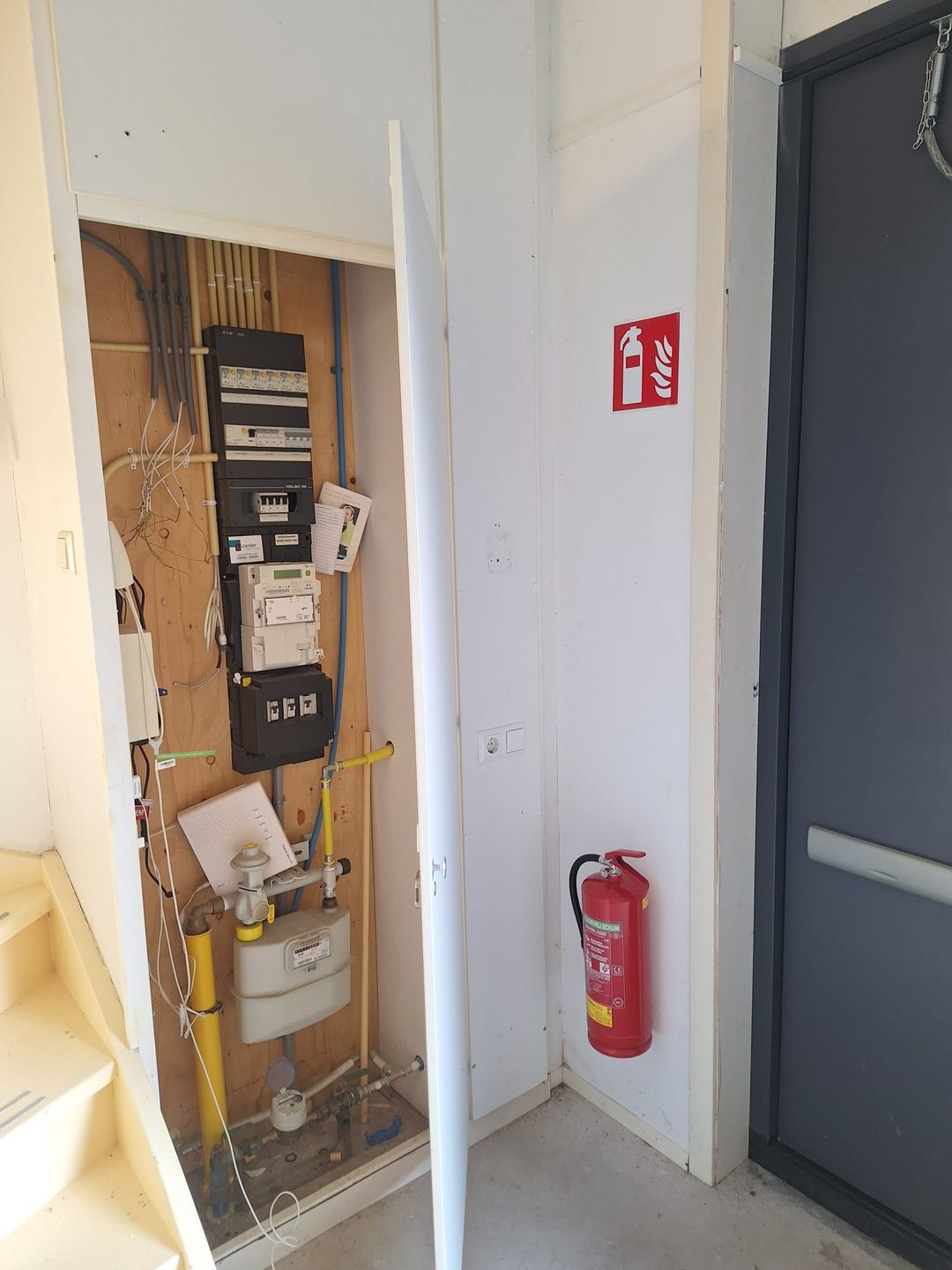 - Brandblussers en brandslang aanwezig.