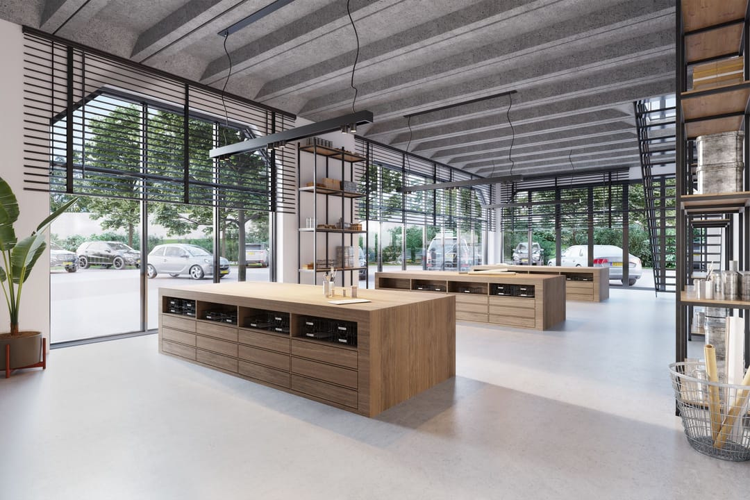 • Flexibele indeling, zowel als kantoorruimte, showroom als opslagmogelijkheden;