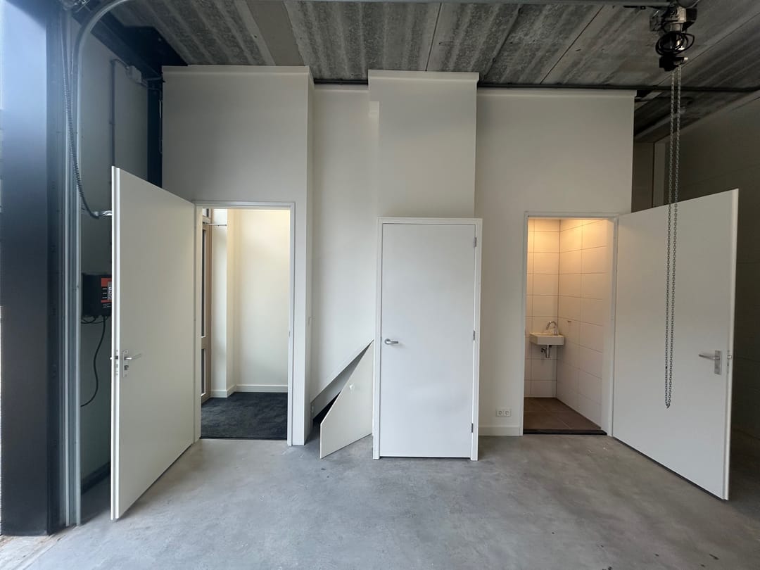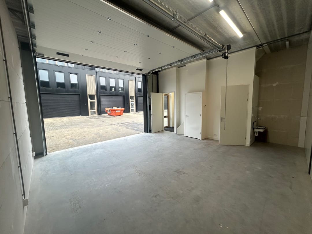 De bedrijfsunit beschikt over 2 privé parkeerplaatsen, direct voor de elektrische overheaddeur. Ook mogelijkheid tot vrij parkeren op de straat.