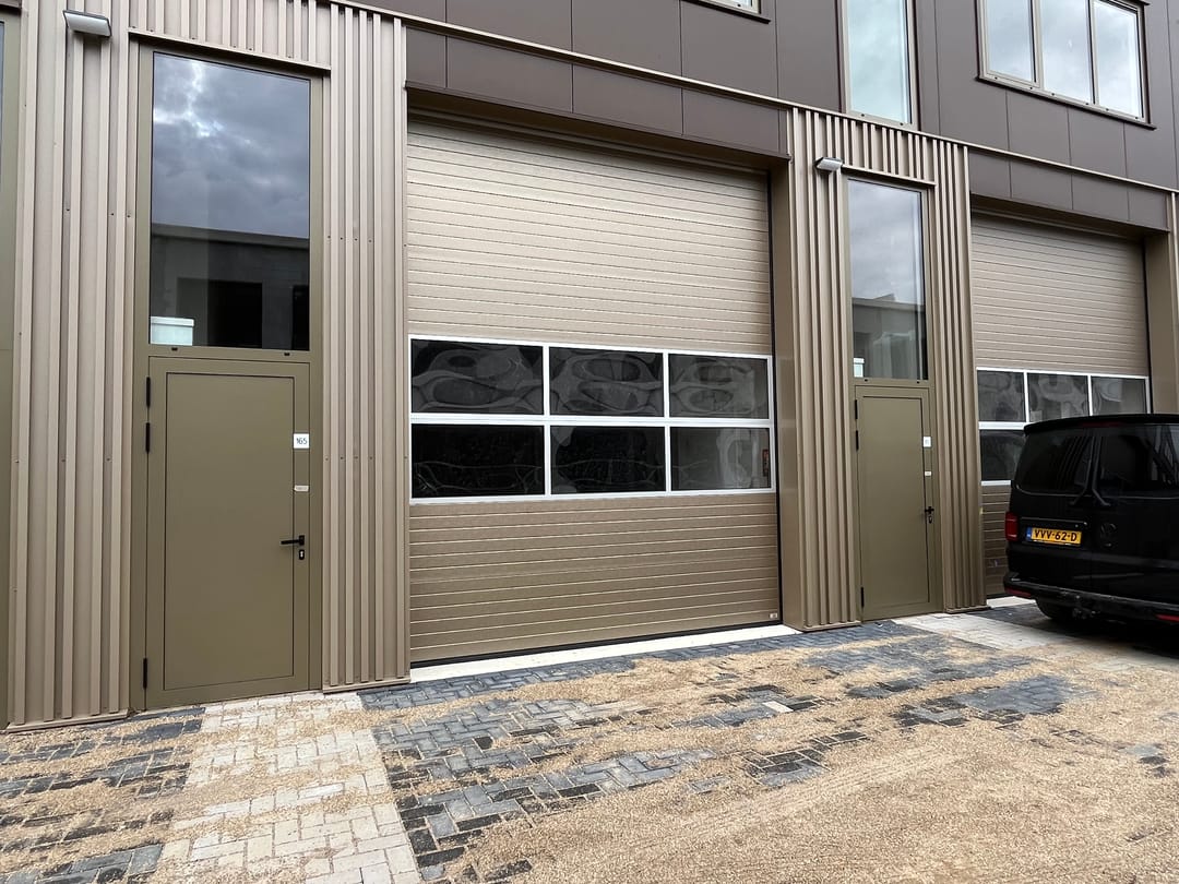 · elektrisch bedienbare overheaddeur ca. 4 mtr. x ca. 4 mtr. (hoog x breed).