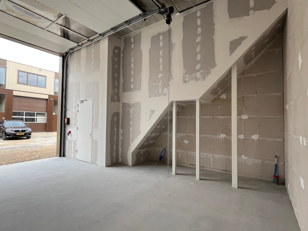 Bij de bedrijfsunit horen twee aangewezen parkeerplaatsen, direct voor de overhead- en loopdeur.