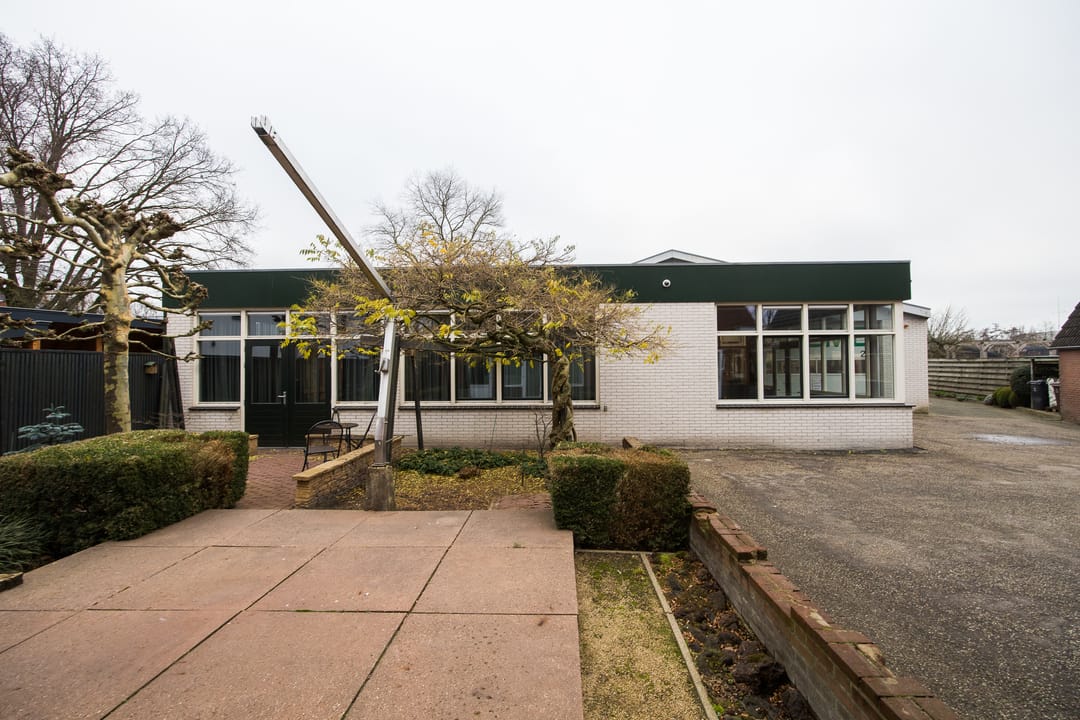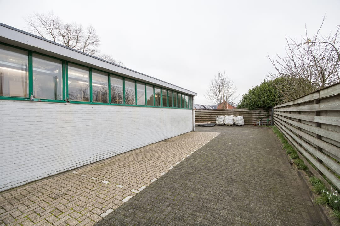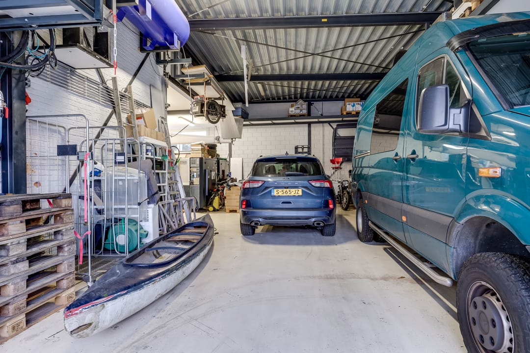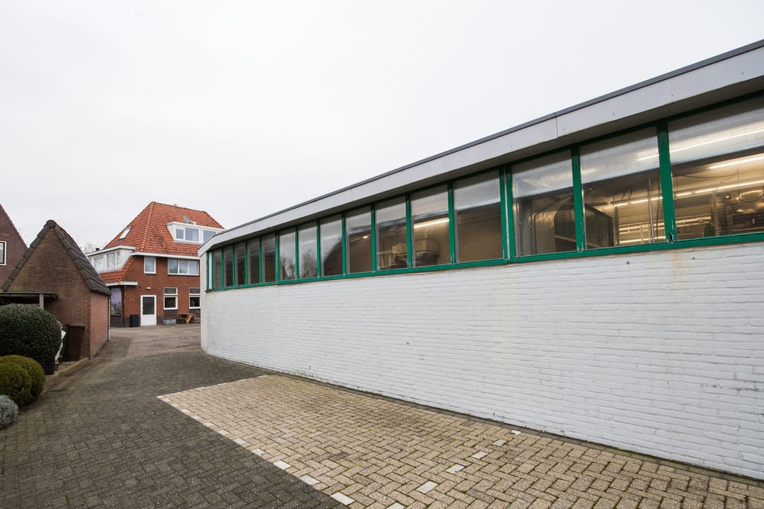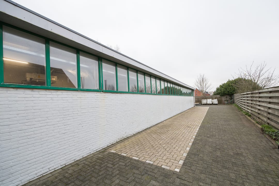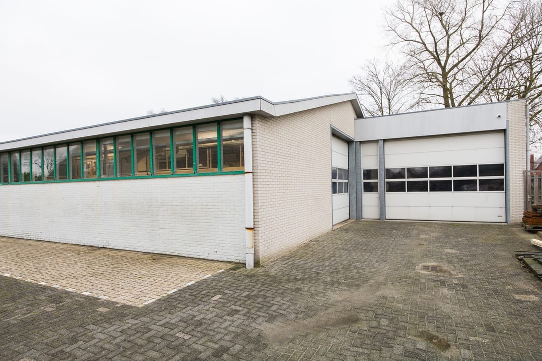 De achtergelegen bedrijfsruimte vormt een absoluut hoogtepunt van dit object. De exacte bouwdatum van de hoofdhal is niet bekend, maar deze is uitgevoerd met traditionele houten spanten en heeft een afmeting van circa 16 x 25 meter, opgebouwd in een stramien van 5 meter. Het pand was bij aankoop in 1999 in gebruik als autogarage (voorheen Toyota-dealer Van Remmen en later autobedrijf Budel) en is in het laatste kwartaal van 1999 grondig gerenoveerd. Daarbij zijn onder andere het dak en de westgevel geïsoleerd met sandwichpanelen en is de vloer voorzien van een epoxy troffelvloer, licht hol uitgevoerd zodat bij eventuele lekkage geen vloeistoffen naar buiten kunnen stromen. Alle rioleringen zijn destijds volledig vernieuwd, waarbij het oude systeem is afgekoppeld en een nieuw, overzichtelijk systeem is aangelegd. Ook het hemelwaterafvoersysteem is vernieuwd en loost via straatkolken op het oppervlaktewater van de aangrenzende sloot. Het waterleidingsysteem, de toiletgroep én de volledige elektrische installatie zijn in 1999 geheel vernieuwd en opnieuw ontworpen.