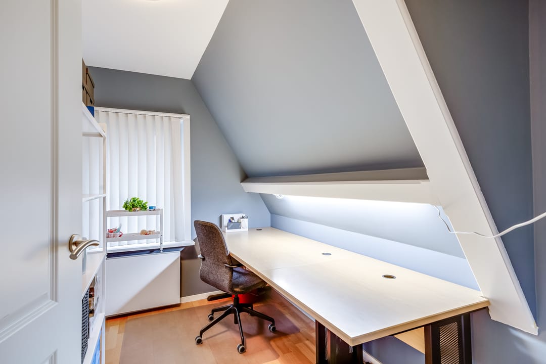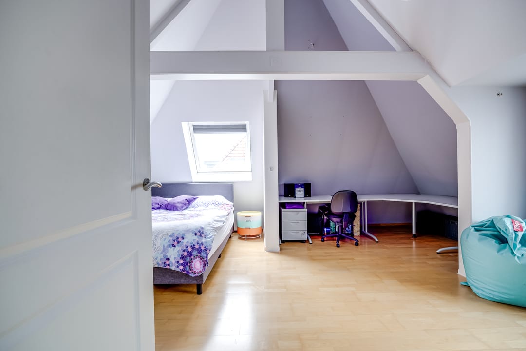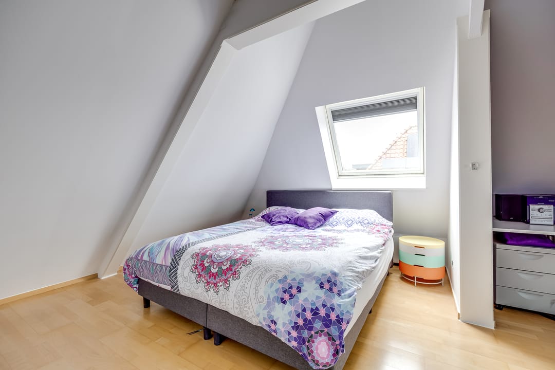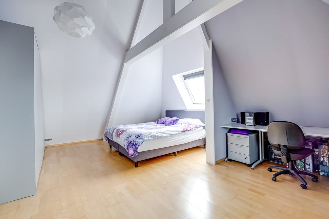 2e verdieping: de tweede verdieping biedt nog eens twee slaapkamers en een extra badkamer met toilet. Door de kapvorm is hier sprake van een speelse indeling met veel bruikbare ruimte. Deze verdieping is perfect als gastenverdieping, voor oudere kinderen of als combinatie van slapen en werken aan huis.