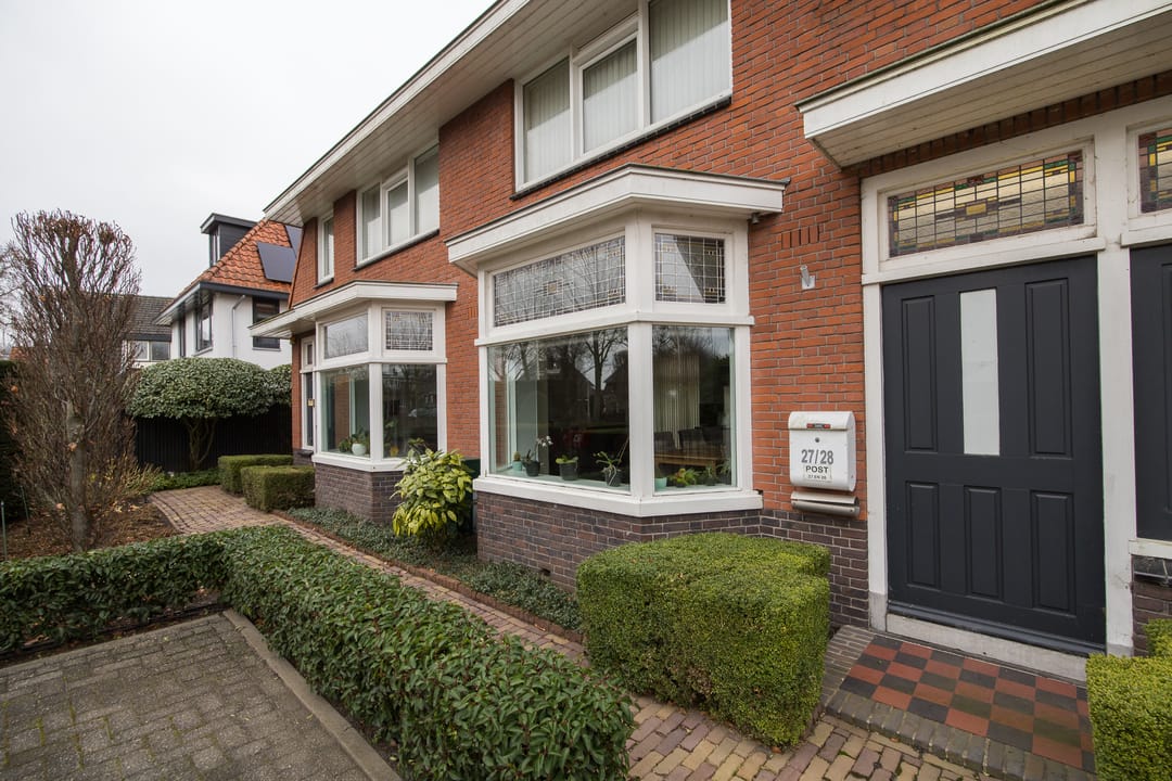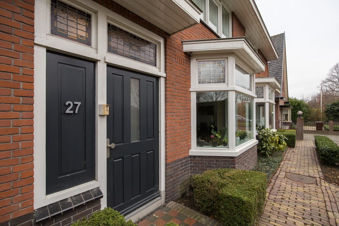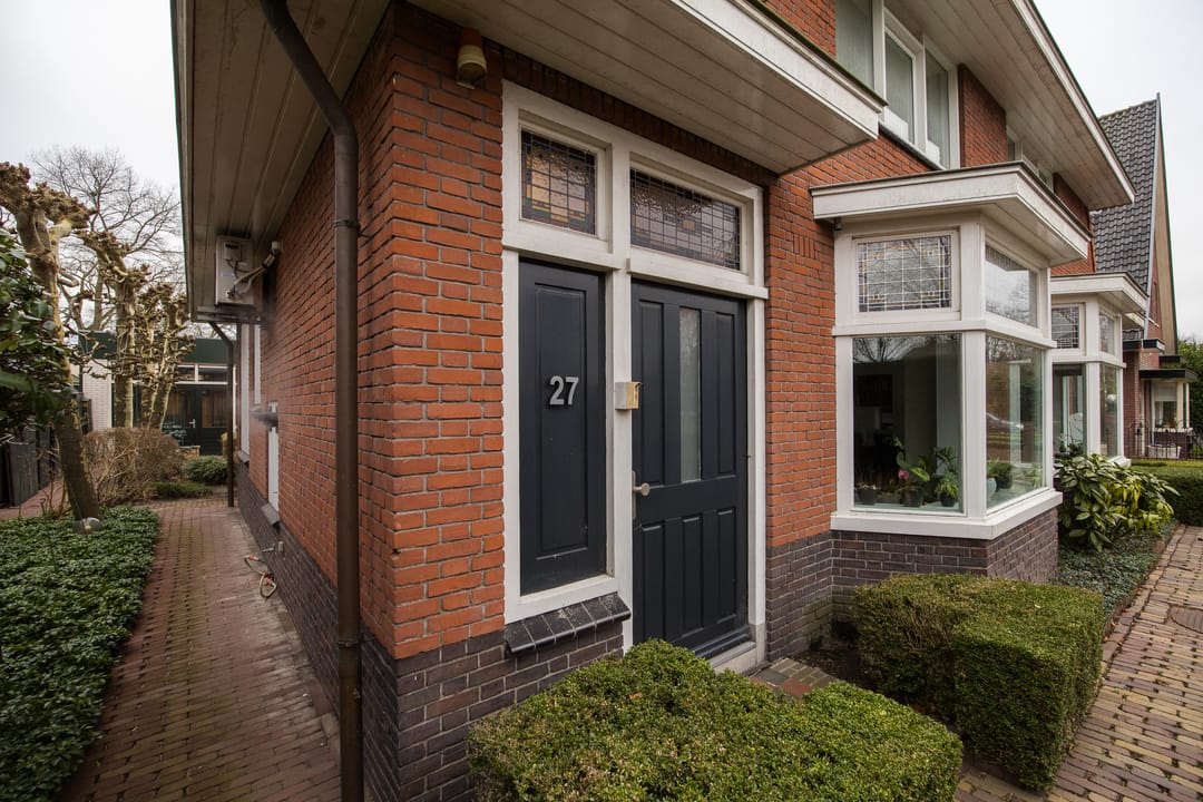 Begane grond: de woning aan nummer 27 beschikt over een ruime en lichte woonkamer met een fraaie erker aan de voorzijde, wat zorgt voor veel daglicht en een prettig uitzicht. De woonkamer vormt het hart van het huis en biedt meer dan genoeg ruimte voor een royale zithoek en een grote eettafel.