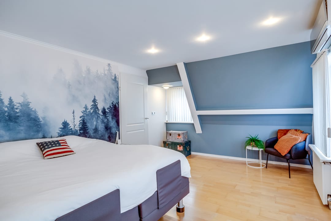 1e verdieping: op de eerste verdieping bevinden zich maar liefst vijf slaapkamers, verdeeld over de gehele verdieping. De kamers variëren in grootte en zijn flexibel te gebruiken als slaap-, werk- of hobbykamer.