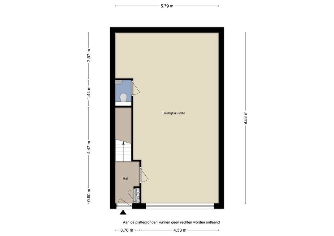 • Begane grond (ca. 55 m²): Bedrijfsruimte met een vrije hoogte van ca. 4,73 m met elektrische loopdeur. Bedrijven tot en met categorie 2 toegestaan;
