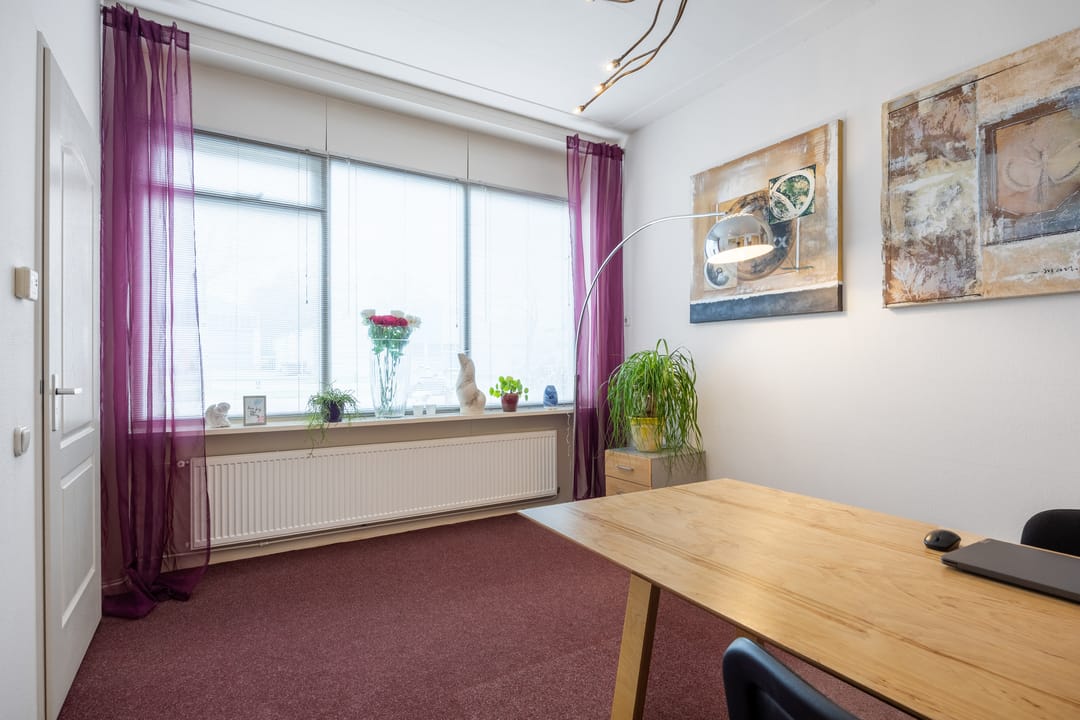 Het eerste bedrijfspand (thans ingericht als kantoor-/praktijkruimte) beschikt over circa 200 m² verhuurbaar vloeroppervlak, verdeeld over circa 103 m² op de begane grond en circa 96 m² op de verdieping. Deze ruimte leent zich uitstekend voor praktijkvoering, dienstverlening, showroom of atelier.