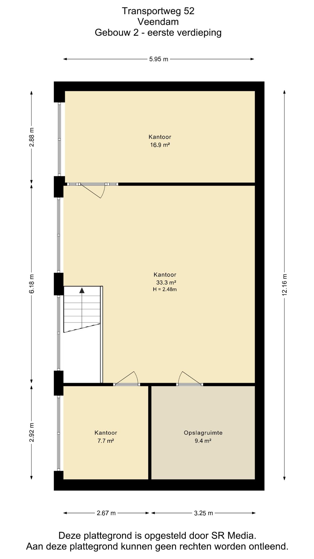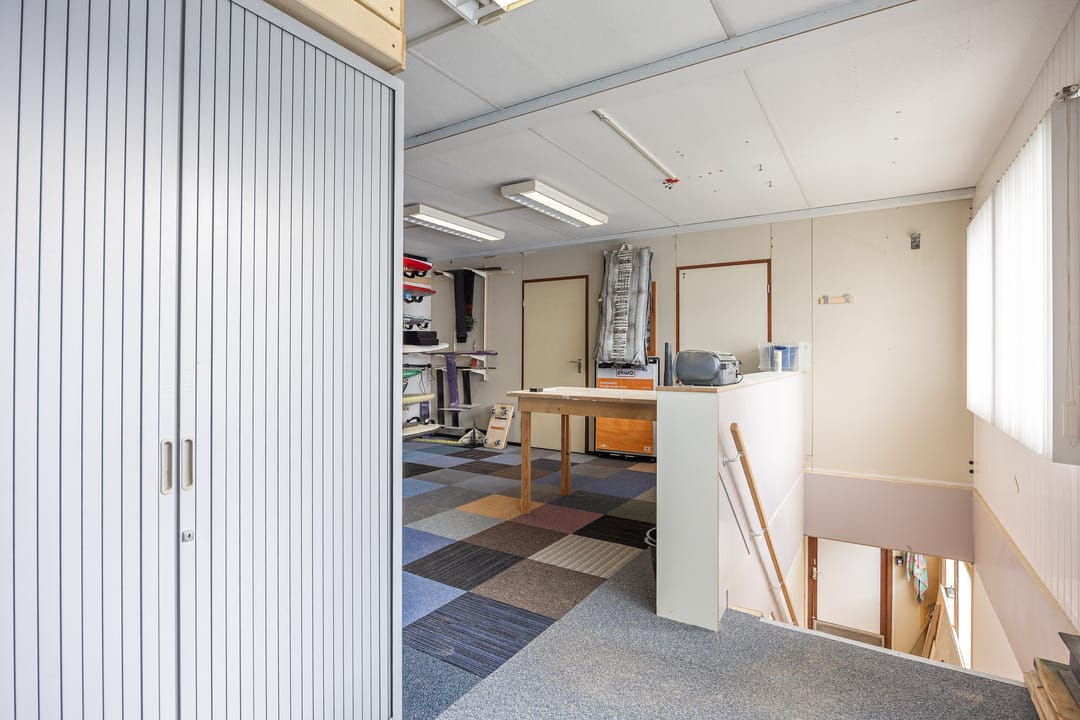 Verdieping: opslagruimte en meerdere werk-/kantoorruimten.
