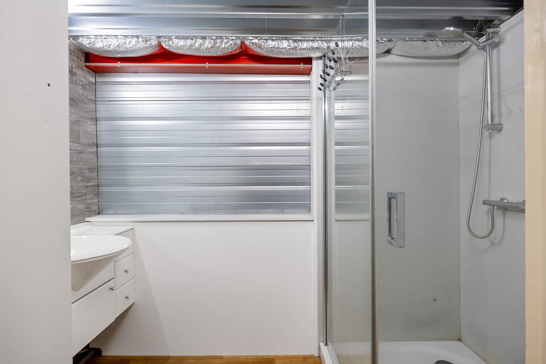 - Air conditioning, mechanical ventilation, three-phase electric power, toilet and windows can be opened