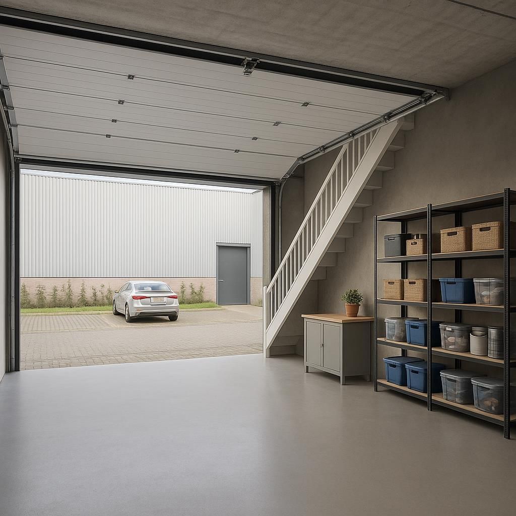 De begane grond beschikt over een loopdeur en een brede elektrisch bedienbare overheaddeur ( ca. 4 m¹ breed x 3,3 m¹ hoog). De verdieping leent zich perfect voor kantoorruimte. Een mooie combinatie, ideaal voor uw onderneming!