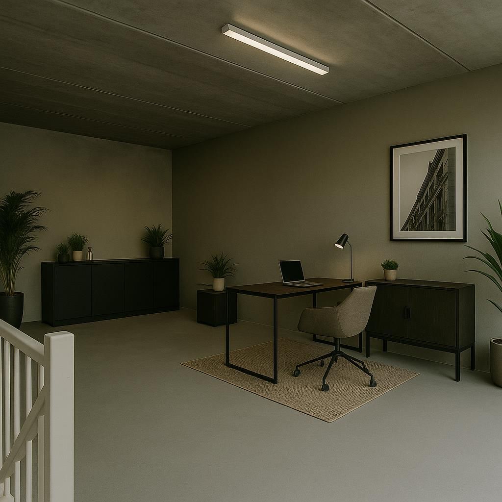 -Kantoor: ca. 13,4 m¹ diep x 7,2 m¹ breed x 3,3 m¹ hoog (ca. 97 m²).