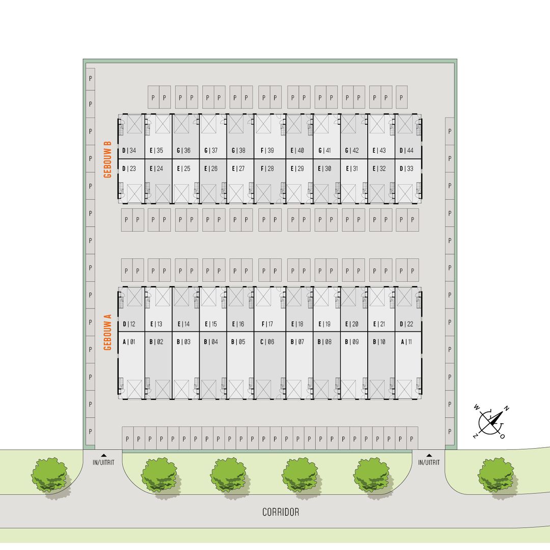 11 units beschikken over een zichtlocatie aan de Corridor, met royale raampartijen en een representatief karakter. Ideaal voor bedrijven die uitstraling en bereikbaarheid willen combineren.