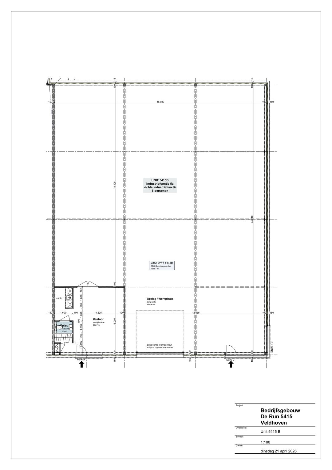 unit 5415B: Totaal ca. 464m² (gbo) inclusief inpandige kantoorruimte van ca. 37m² (gbo). Huurprijs €45.000,- exclusief btw per jaar en 4 parkeerplaatsen.