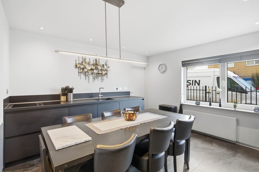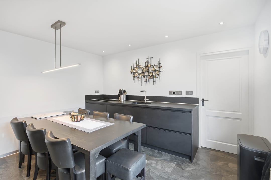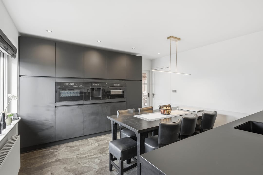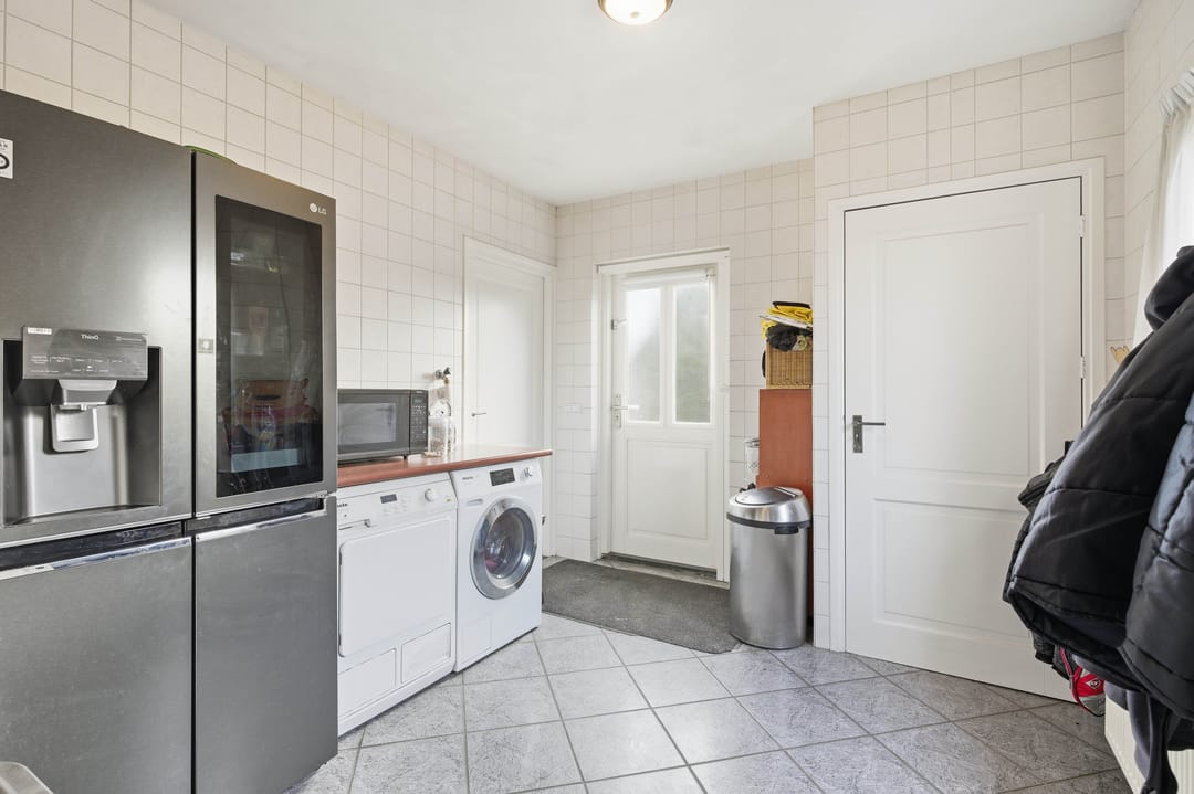 Entree en hal, toilet, ruime woonkamer, dichte keuken met luxe inbouwkeuken (2019) voorzien van moderne apparatuur, bijkeuken, kantoor / werkkamer.