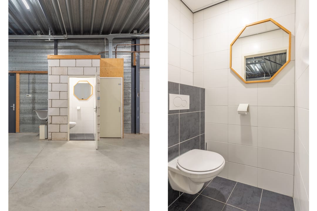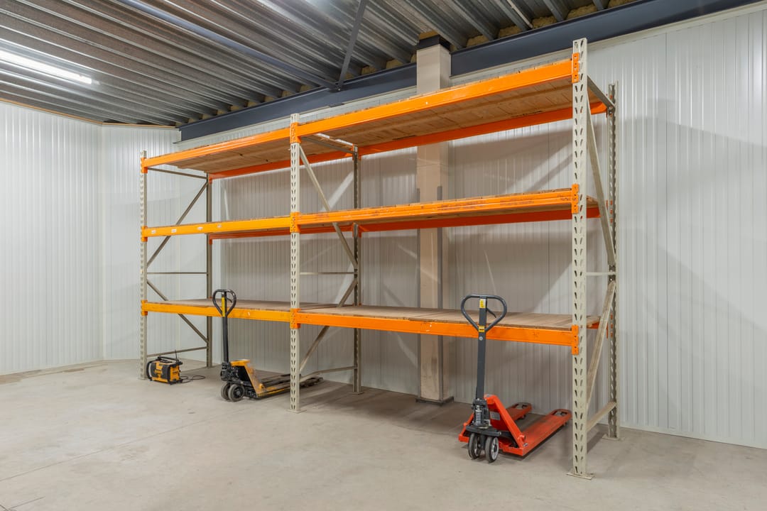 Het pand bestaat uit drie verdiepingen met ruime opslaghallen die onderling verbonden zijn via een centrale lift en een trap. Op de begane grond bevindt zich een toiletgroep in de hoek van de hal.