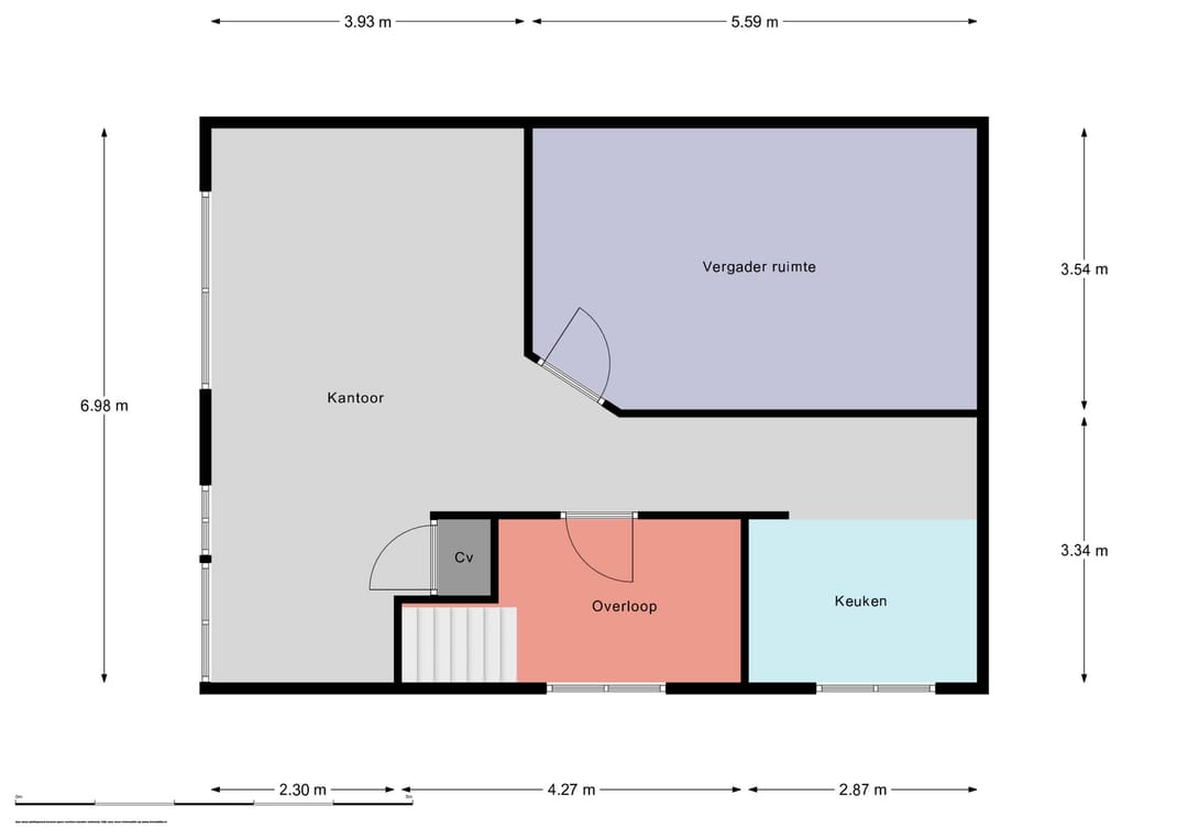 Via een trap vanuit de hal toegang tot de kantoorruimte.