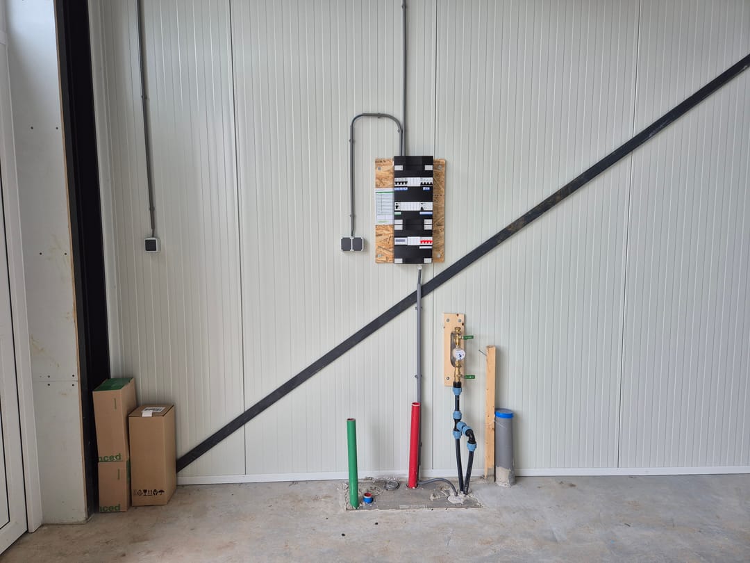 - Voorzieningen: wateraansluiting met watermeter, afgedopt riool en meterkast met voldoende groepen.