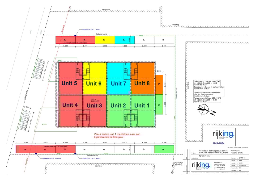 Iedere unit heeft recht op 1 eigen parkeerplaats.