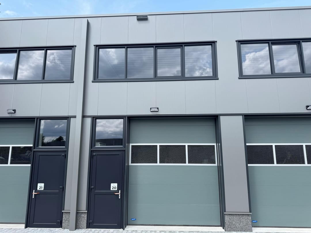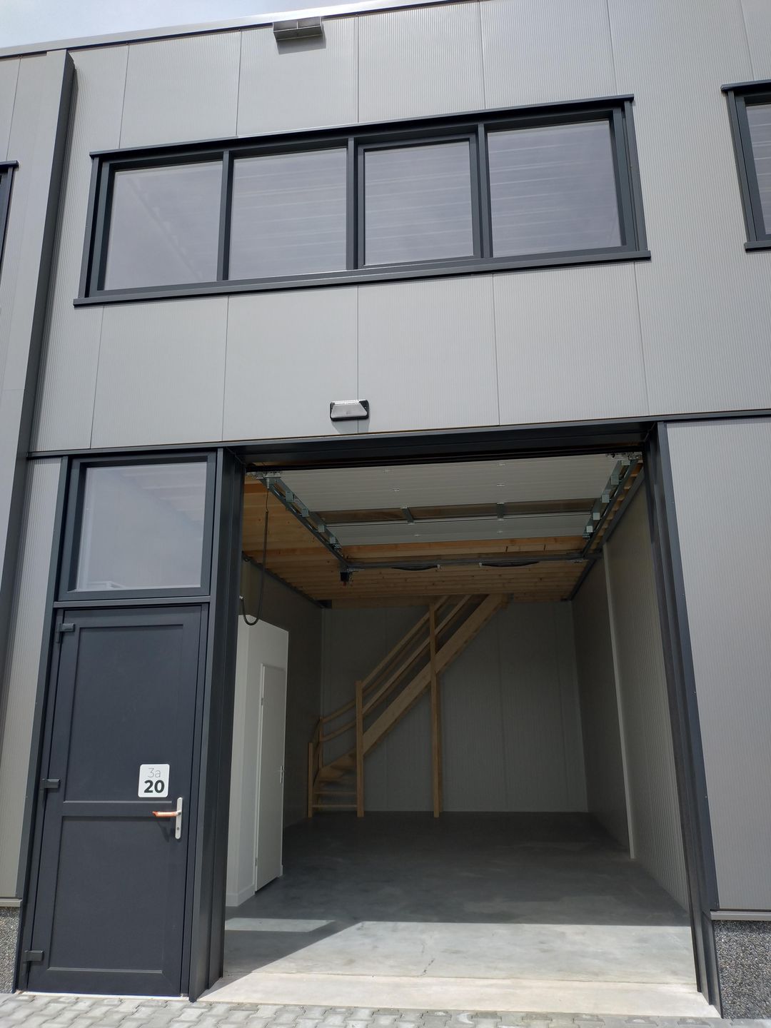 - Elektrisch bedienbare thermo-overheaddeur (3.00 m breed x 3.50 m hoog) met volglas paneel en 2 afstandsbedieningen;