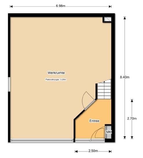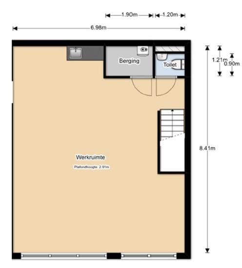 - vrije hoogte op de begane grond ca. 3,30 meter en vrije hoogte op de verdieping ca. 2,90 meter;