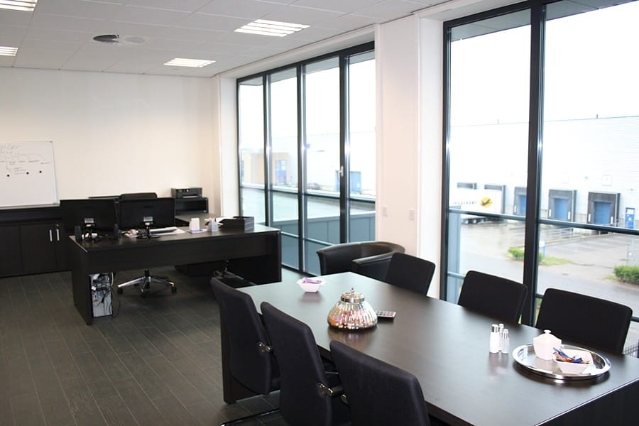 Overloop (29 m²) met keukenblok, 2 toiletten, groot kantoor (48 m²), vergaderruimte (39 m²), directiekantoor (19 m²), opslagruimte (ca. 490 m²) inclusief inpandige kantoorruimte.