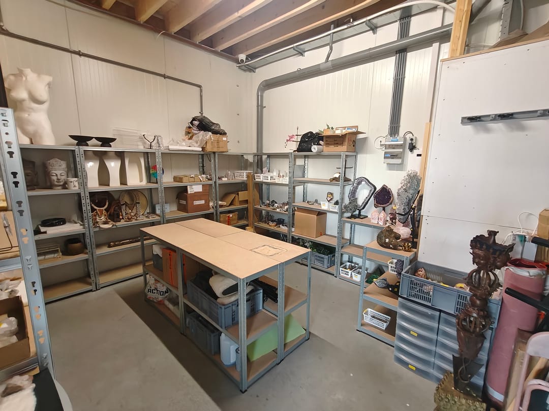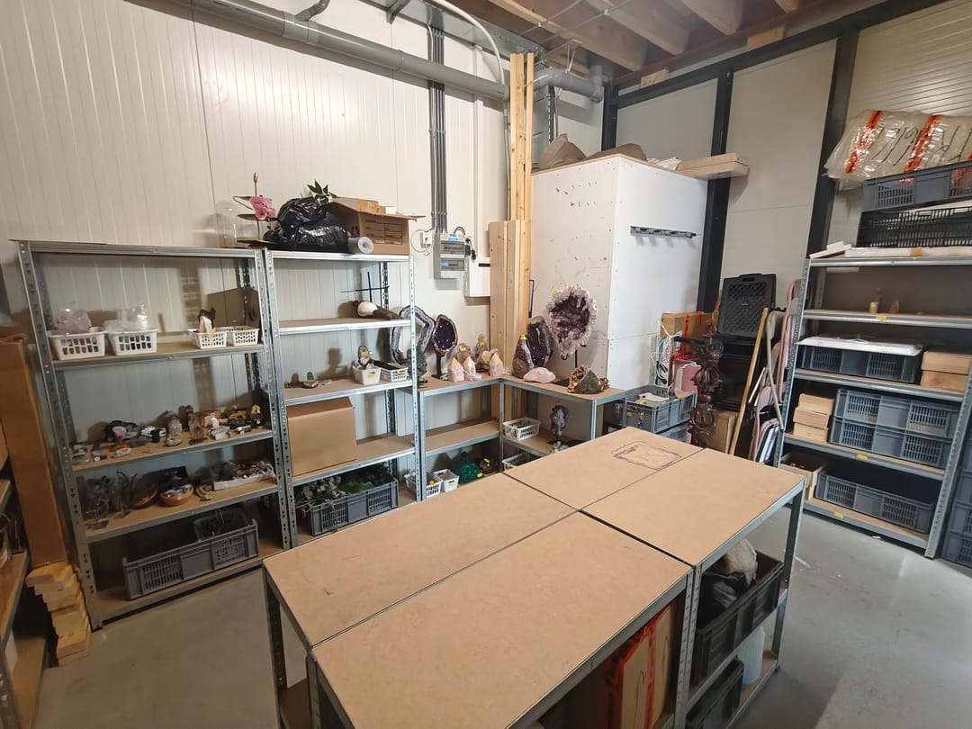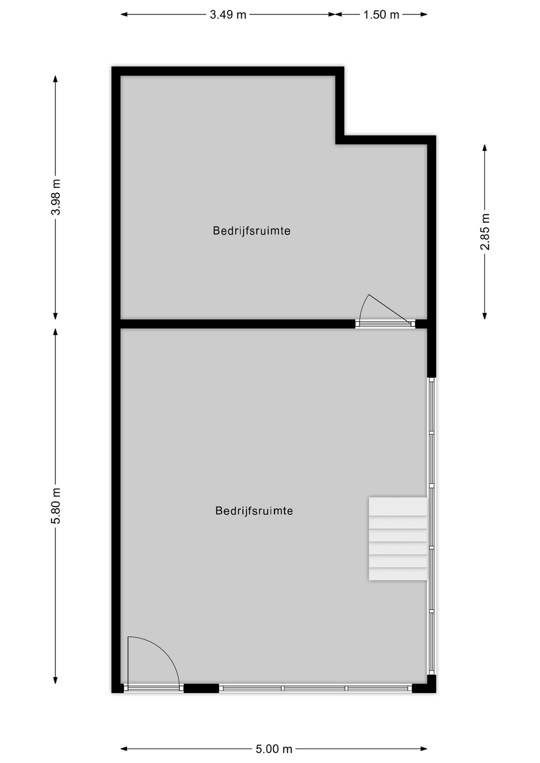 Entree met toegang tot de showroom met achtergelegen opslagruimte, trapopgang naar verdieping. Op de verdieping bevindt zich een kantoor met kamerindeling, een toilet en een keuken.
