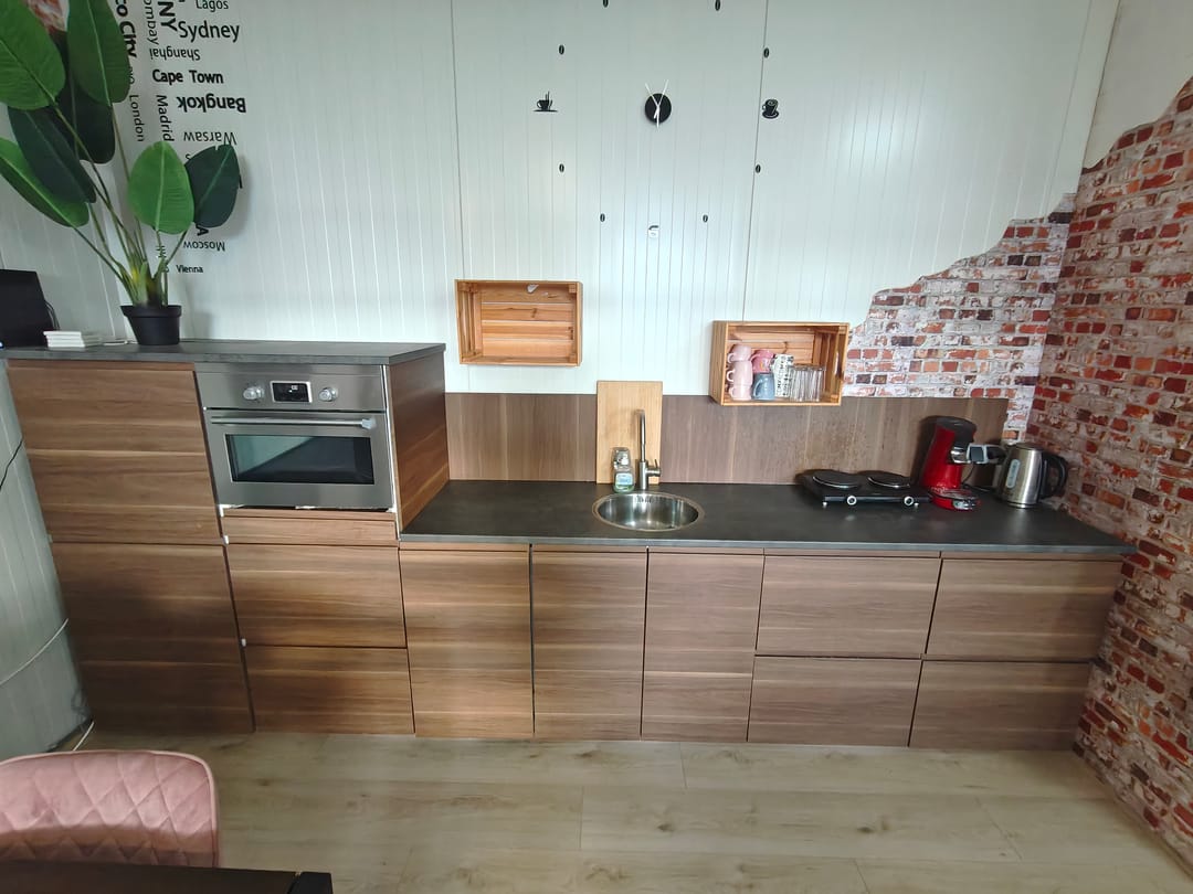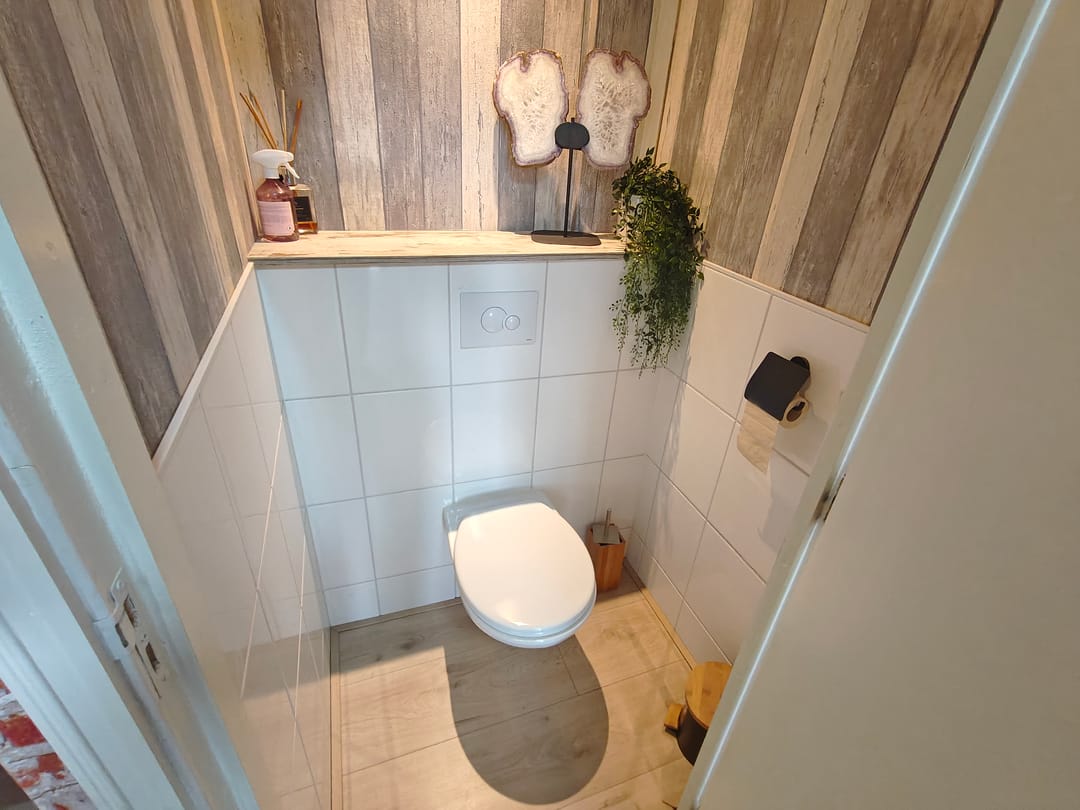 Entree met glazen pui, systeemplafond met ledverlichting, laminaatvloer (gedeeltelijk), pantry met koelkast en magnetron, airco op beide verdiepingen, toilet, alarm en camerabeveiliging.
