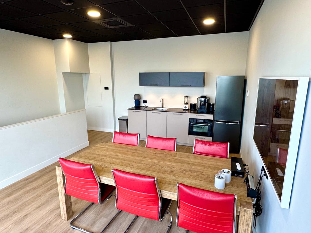 - Spreektafel, stoelen en Samsung grootbeeld TV/monitor in overleg beschikbaar