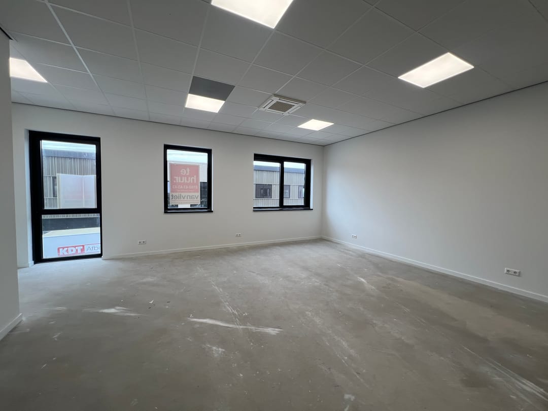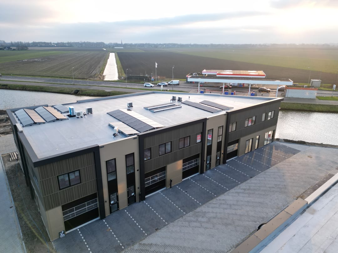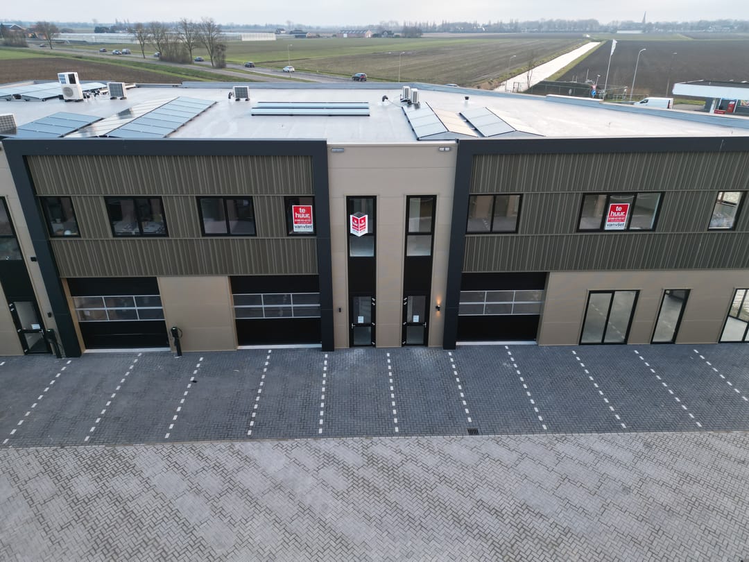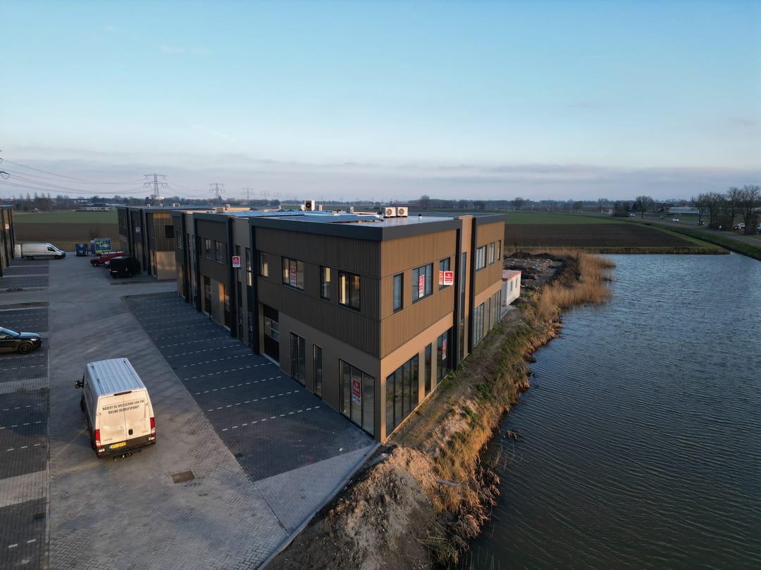 Moderne bedrijfsruimte met betonnen met luxe kantoorruimte en eigen zonnepanelen, onderdeel van het nieuwbouwproject aan de Reedijk in Heinenoord bestaande uit 44 bedrijfsunits.