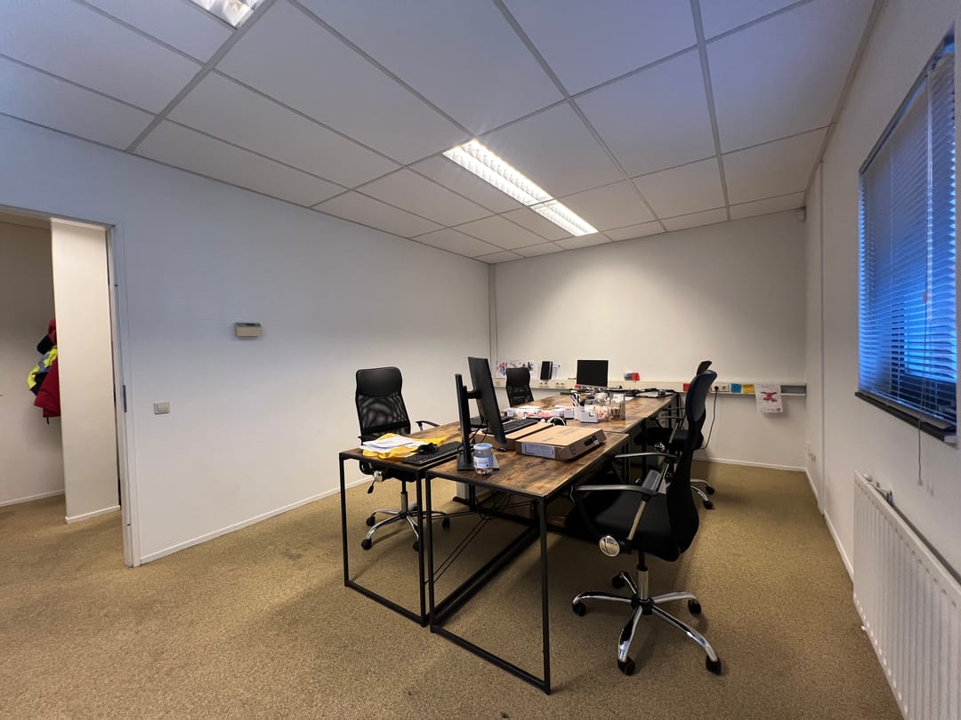Het kantoor is toegankelijk via de entree/hal, welke is voorzien van een meterkast, pantry, betegeld toilet en een bergkast. Het afsluitbare kantoorcompartiment bevindt zich rechtsvoor in de bedrijfsruimte en beschikt over een systeemplafond met verlichtingsarmaturen, een vrije hoogte van ca. 2,59 meter, vloerafwerking, verwarming door middel van radiatoren, te openen ramen en een kabelgoot met data en elektra. Via het gangportaal is de bedrijfsruimte toegankelijk, welke eveneens bereikbaar is door middel van de overheaddeur met loopdeur.