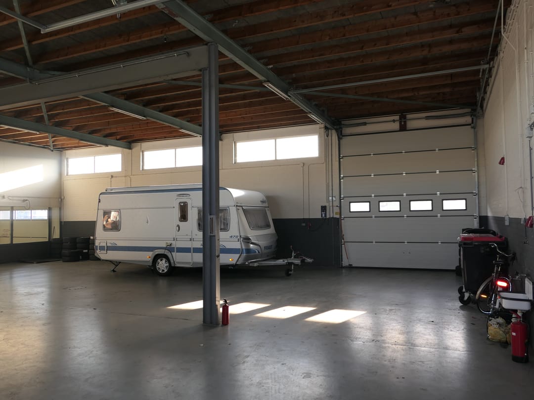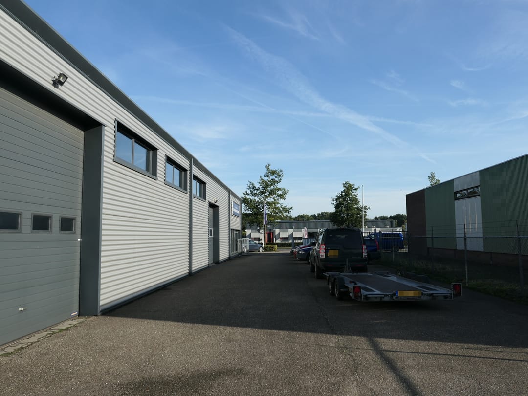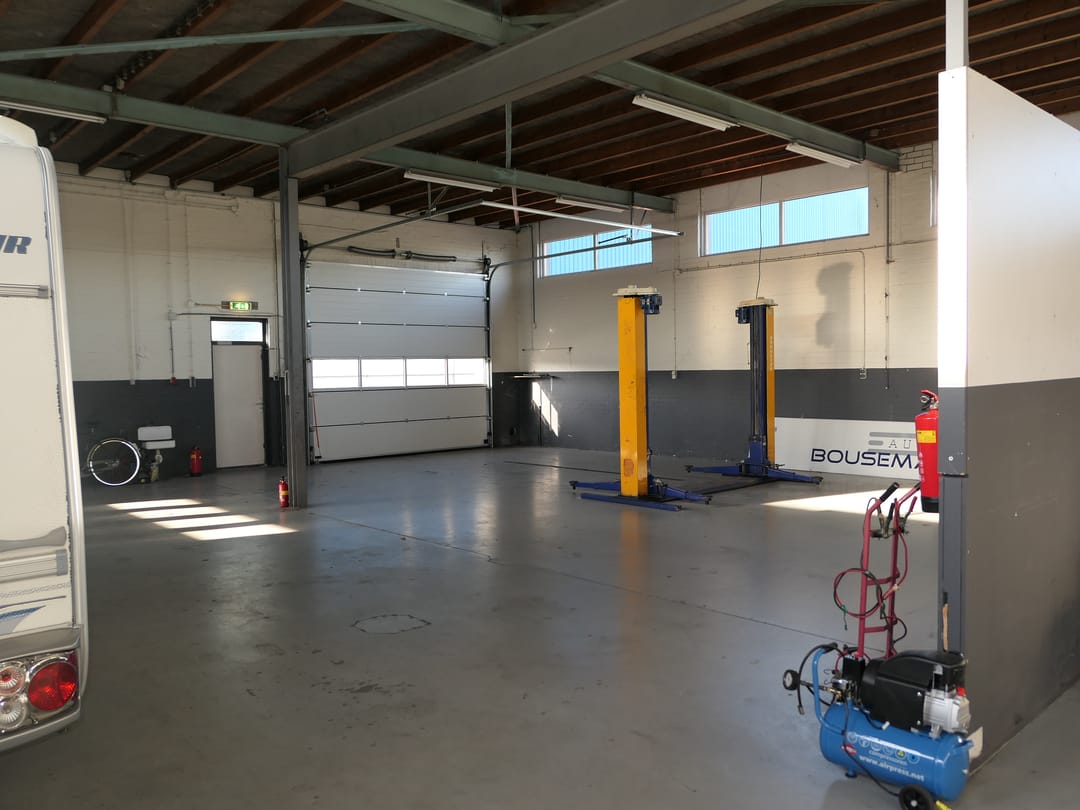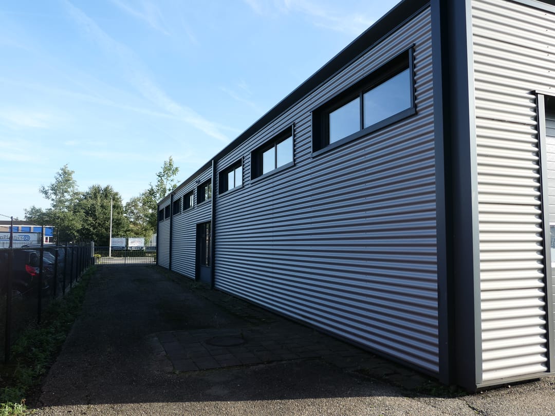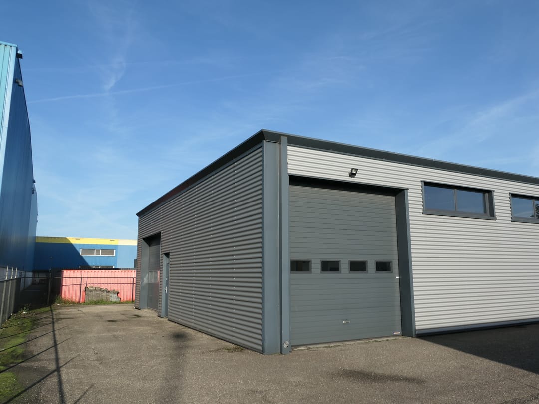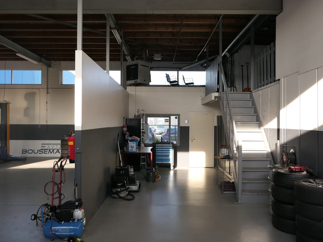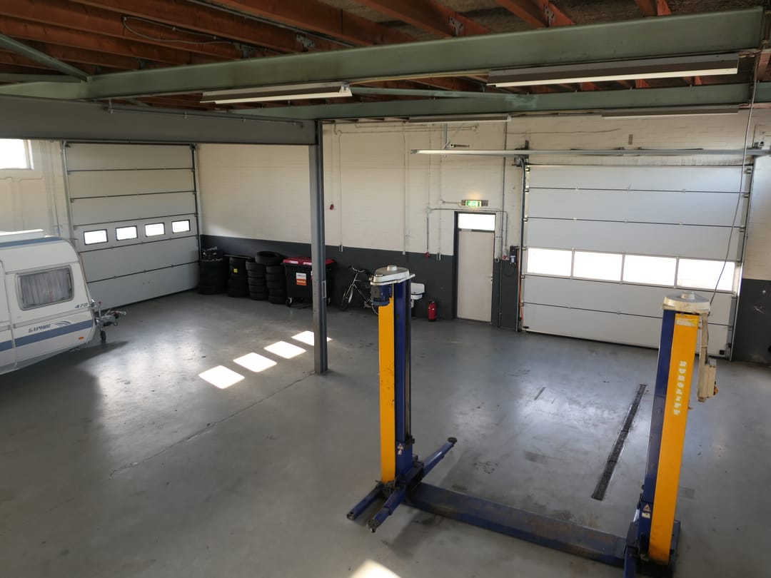 De werkplaats beschikt o.a. over twee elektrisch bediende overheaddeuren en een vlakke betonvloer. Vrije hoogte circa 3.90 meter (gemeten onder laagste constructiebalk).
