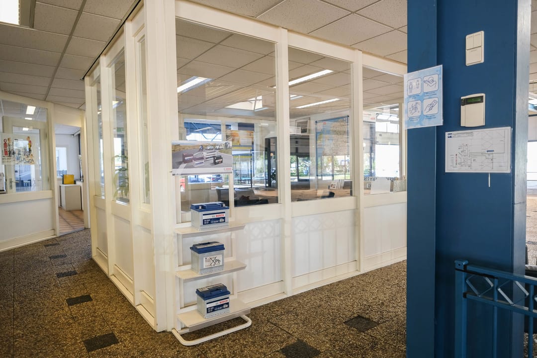 Vanuit de showroomruimte is directe toegang mogelijk naar de kantoorruimte op de begane grond en de eerste verdieping, welke beschikt over een systeemplafond.