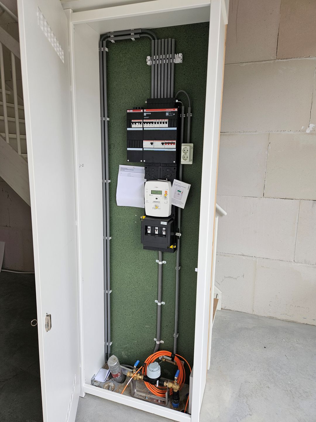 - groepenkast inclusief aansluiten overheaddeur en wandlamp bij entree;