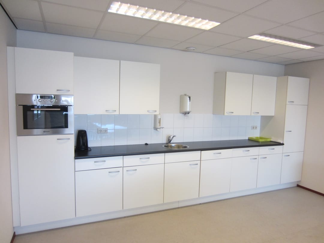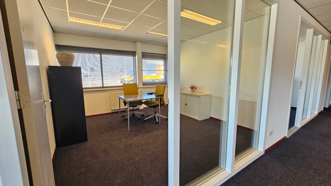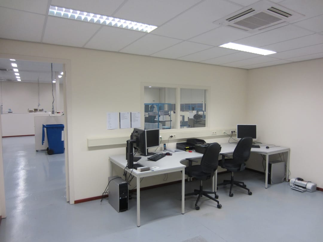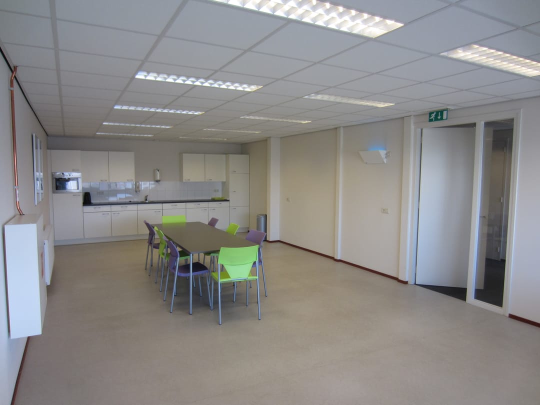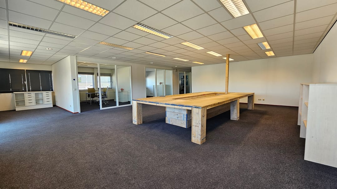 De kantoorruimte is een aantal jaren geleden volledig gerenoveerd en voorzien van systeemplafond met TL-inbouwarmaturen, vloerbedekking, nieuw sanitair, kantine met keukenopstelling en nette kantoren en spreekkamers en vergader-/presentatieruimte met veel glas, zodat er een lichte en prettige werkomgeving is gecreëerd.