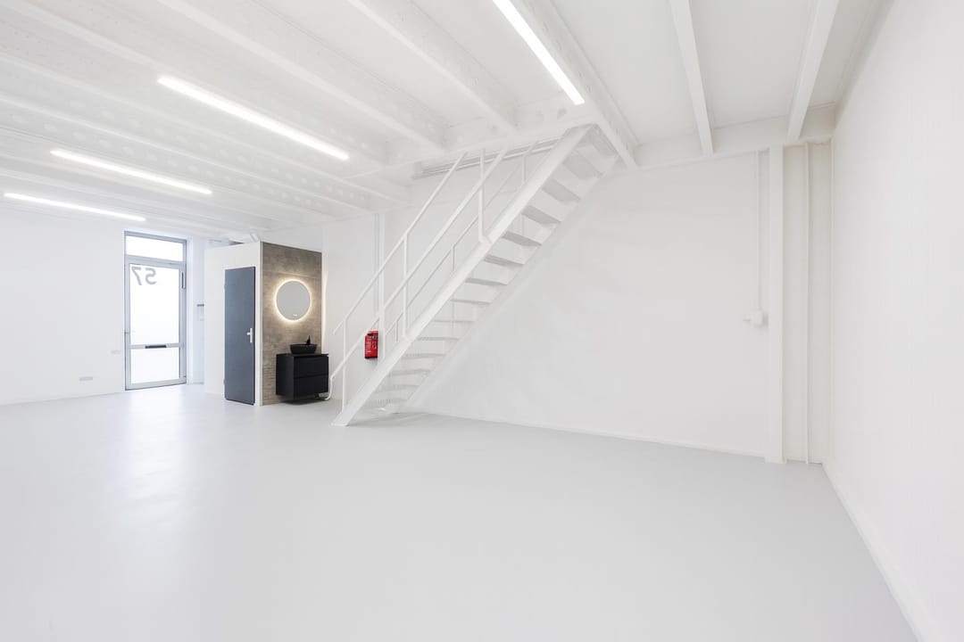 Let op: de foto's geven slechts een indicatie van hoe de ruimte eruit zou kunnen zien als de wanden en plafonds wit zijn (momenteel zijn deze zwart). De verhuurder is bereid om deze wit te maken als hier de voorkeur naar uit gaat.