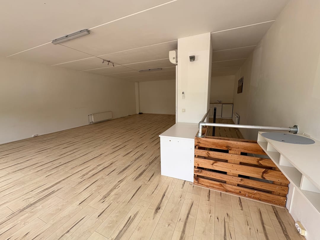 De bedrijfsunit omvat circa 138 m² verdeeld over twee verdiepingen, circa 70 m² op de begane grond en circa 68 m² op de eerste verdieping. De begane grond bestaat uit een entree, opslag en een toiletruimte. De eerste verdieping betreft een open kantoor en is voorzien van een pantry en een airco.