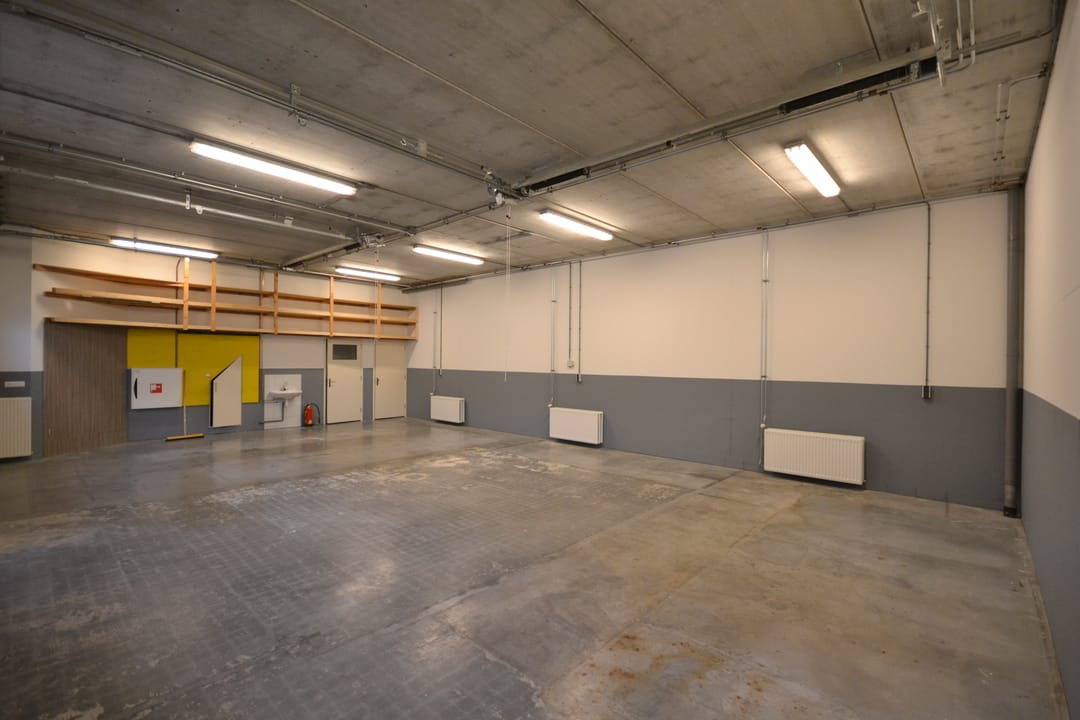 De begane grond meet ca. 112 m2 verhuurbare vloeroppervlakte, binnenwerks gemeten en heeft een vrije hoogte van ca. 3.80 meter.